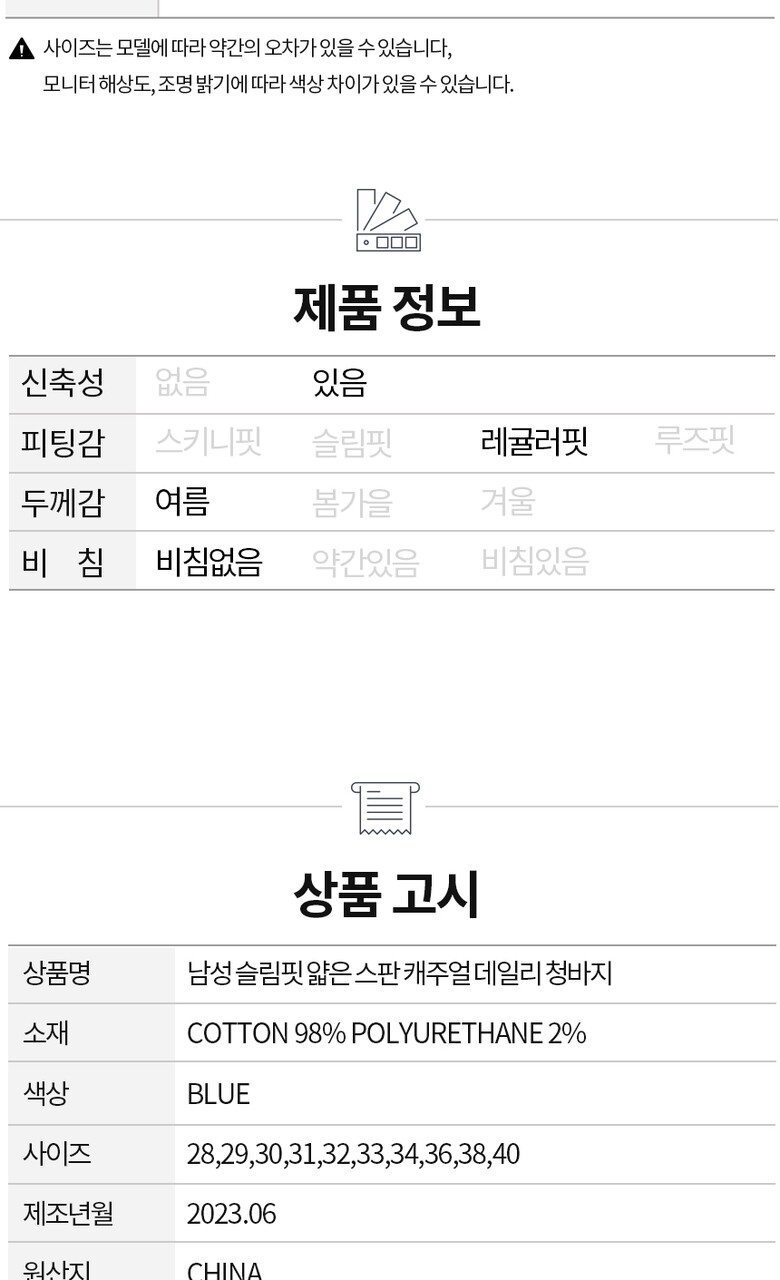 남성 슬림핏 얇은 스판 캐주얼 데일리 청바지 AJN165