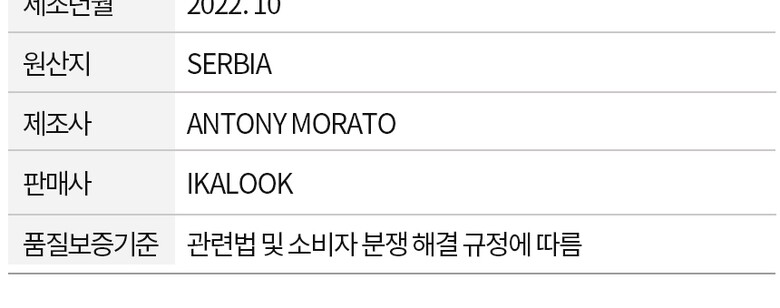 1. 제품 소재 (섬유의 조성 또는 혼용률을 백분율로 표시, 기능성인 경우 성적서 또는 허가서) | 상세페이지 참고 |