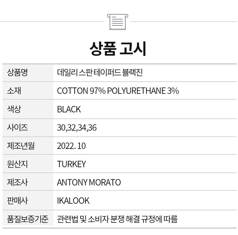 1. 제품 소재 (섬유의 조성 또는 혼용률을 백분율로 표시, 기능성인 경우 성적서 또는 허가서) | 상세페이지 참고 |
