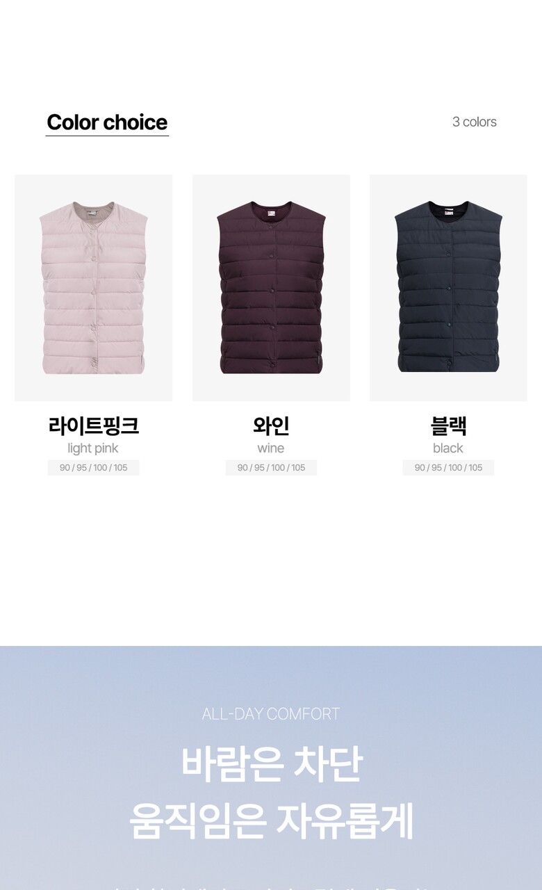 [PWX][A]Q325-6451-53 여성 경량 패딩베스트