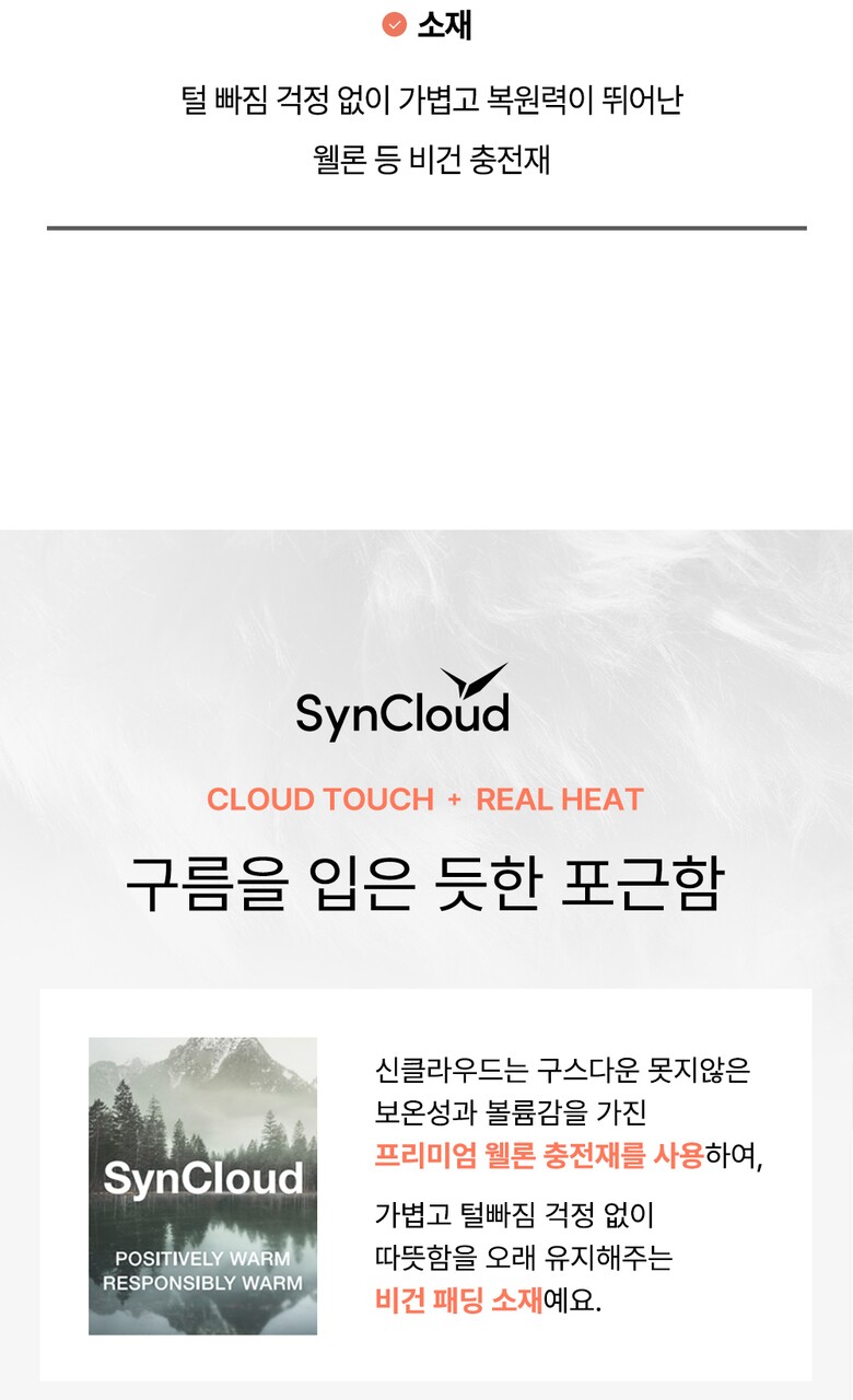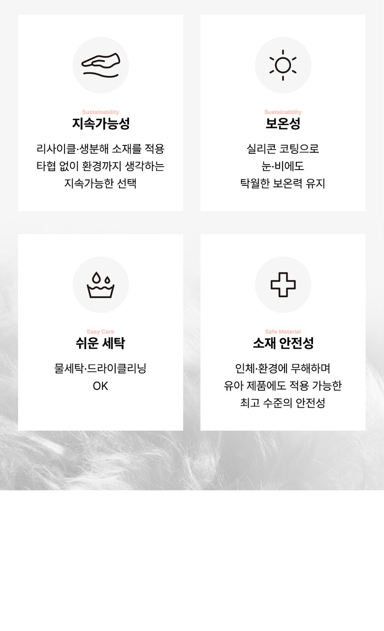 1. 제품 소재 (섬유의 조성 또는 혼용률을 백분율로 표시, 기능성인 경우 성적서 또는 허가서) | 겉감 폴리에스터100% 안감1 나일론100% 안감2 폴리에스터100% 충전재 폴리에스터100% |