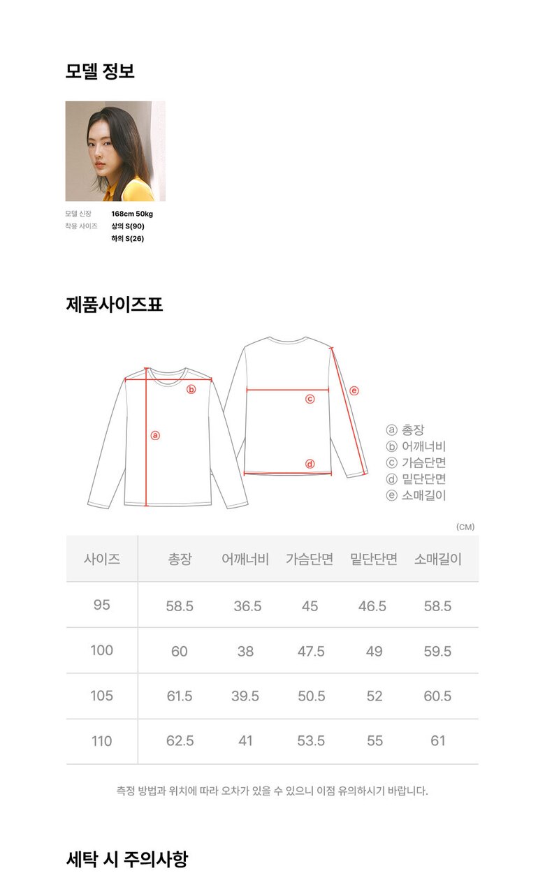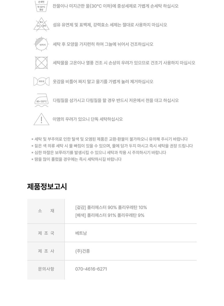 6. 세탁방법 및 취급시 주의사항 | 상세페이지 표기 |