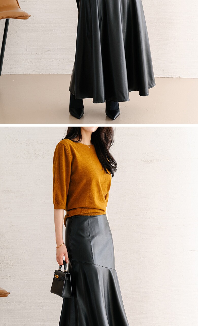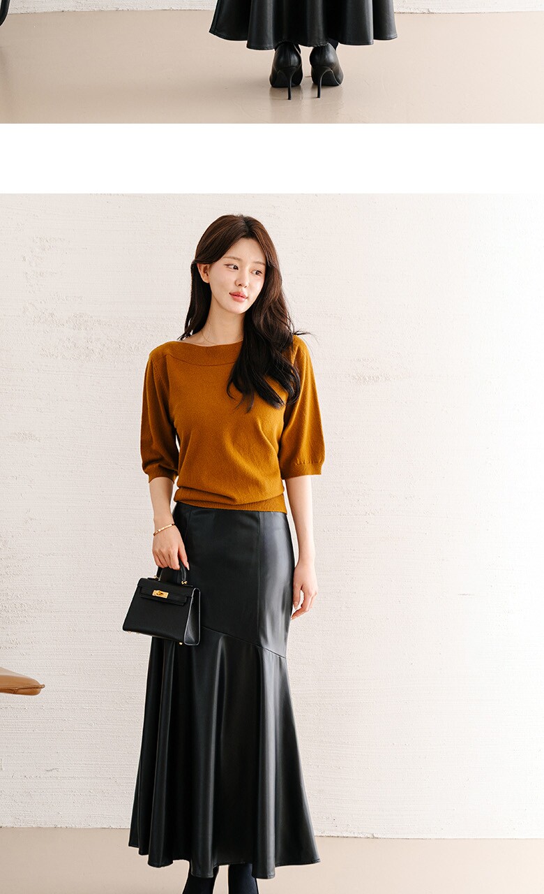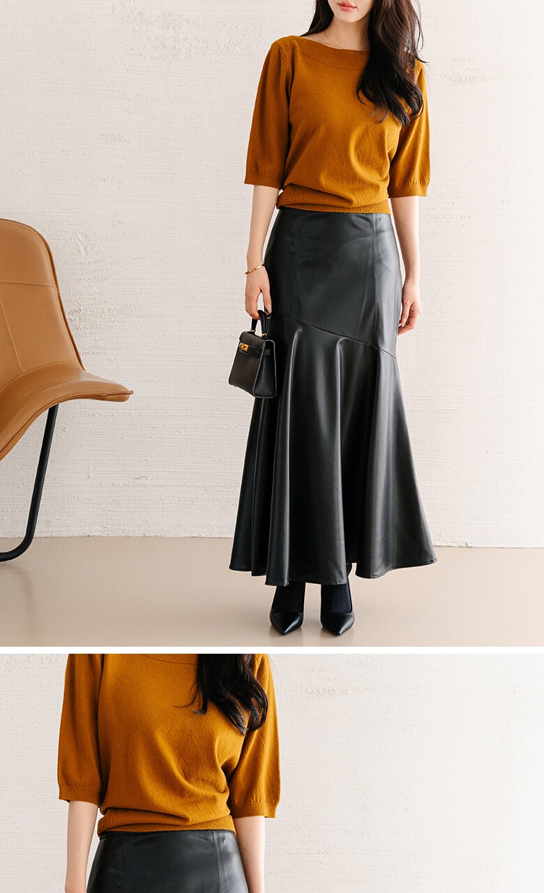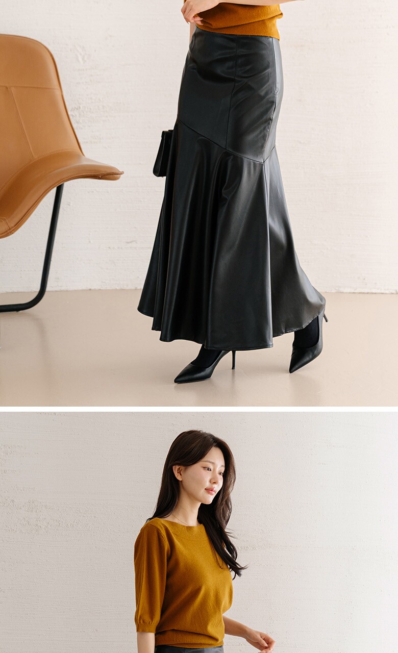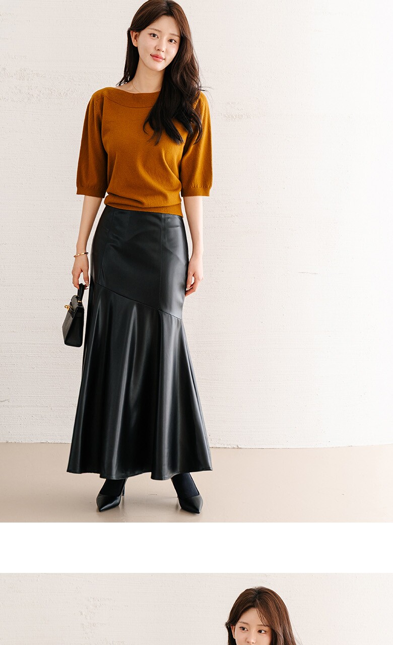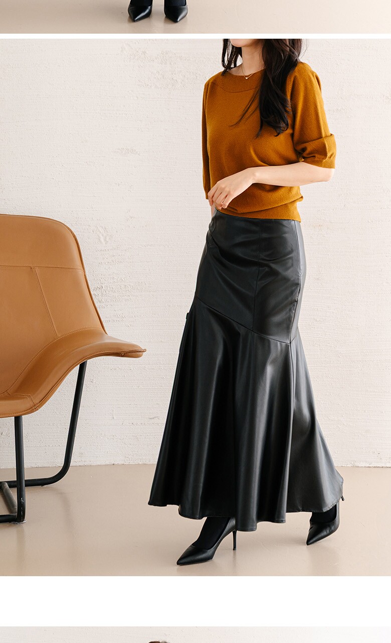 [55-66]절개라인 가죽 롱 스커트_M2509SK614C
