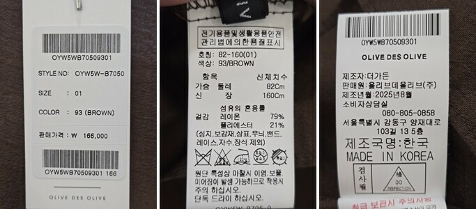 · 취급 시 주의사항 : 원단 특성상 마찰시 이염,보풀,미어짐이 발생 가능하므로 착용시 주의하십시오.