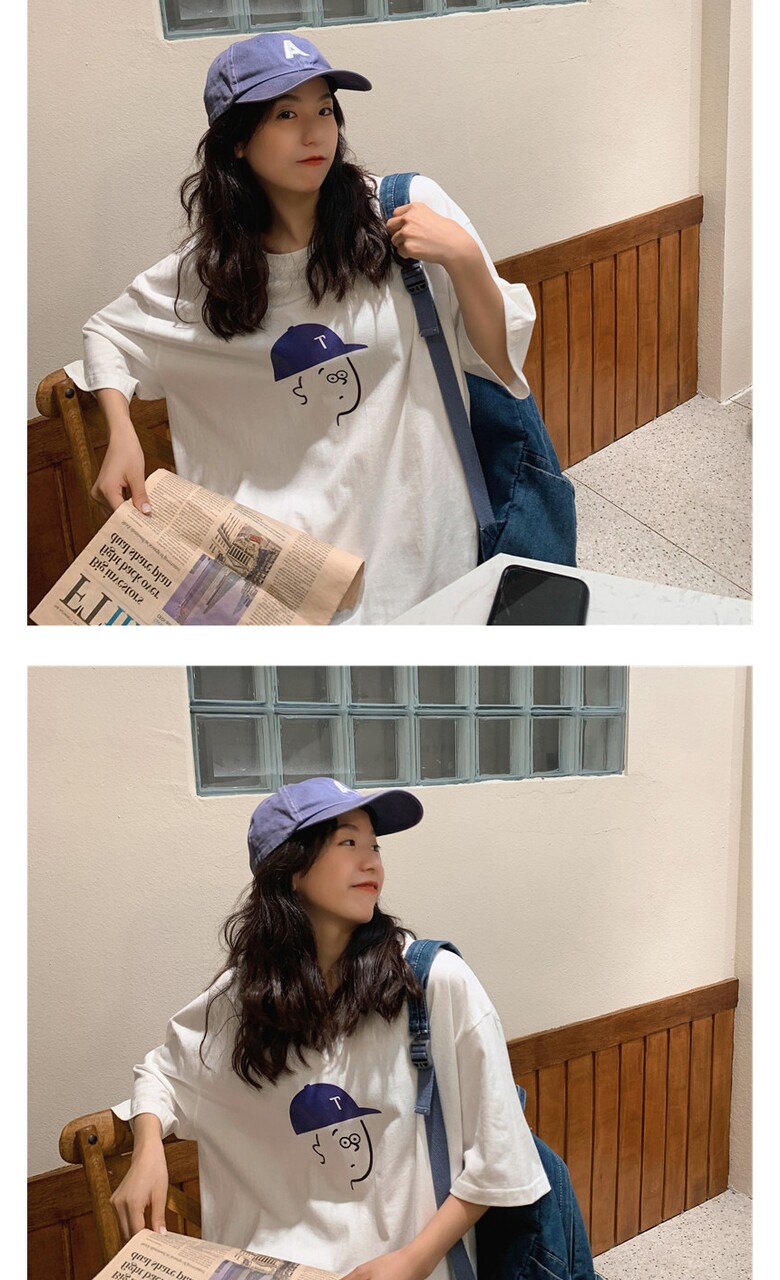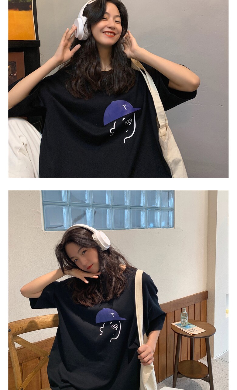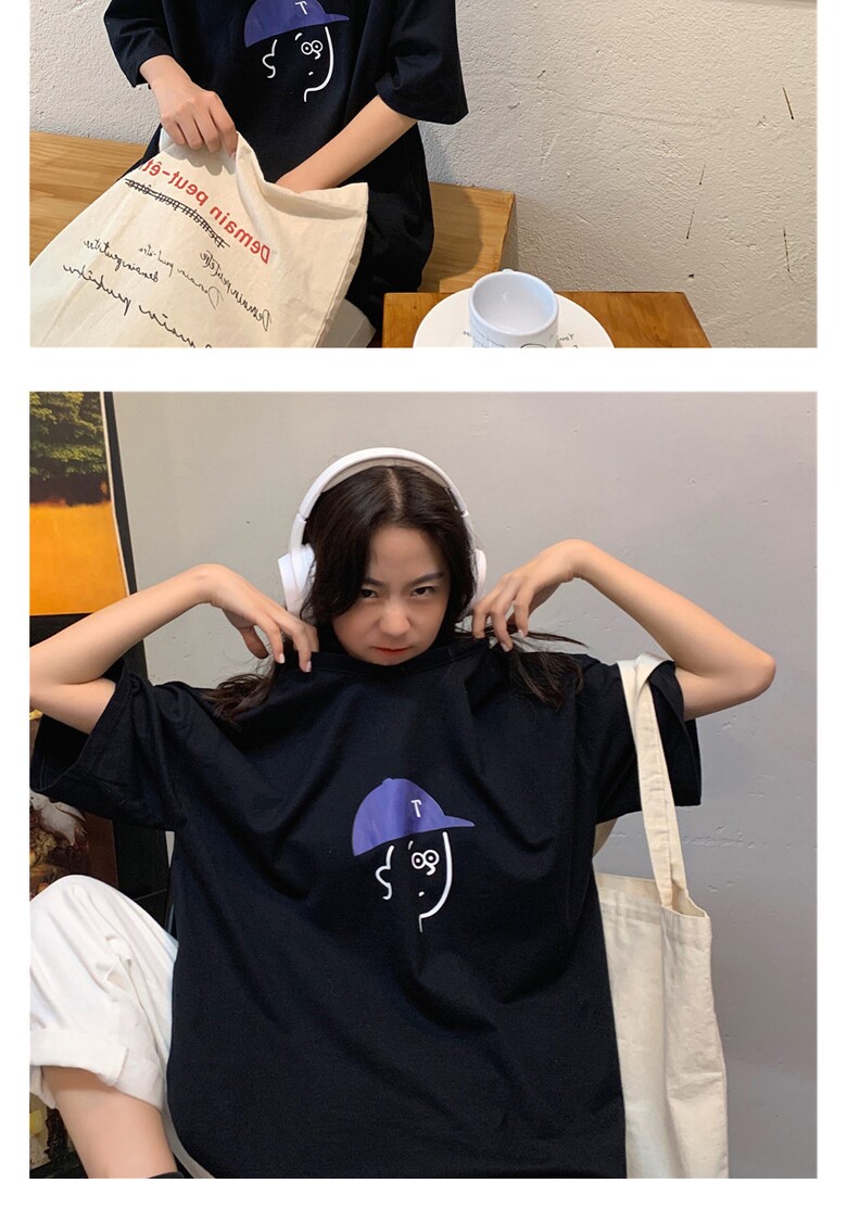 얼굴 프린팅 오버핏 박스티 티셔츠 박스핏 여름 반팔 빅사이즈 반팔티 여성 무지 여자