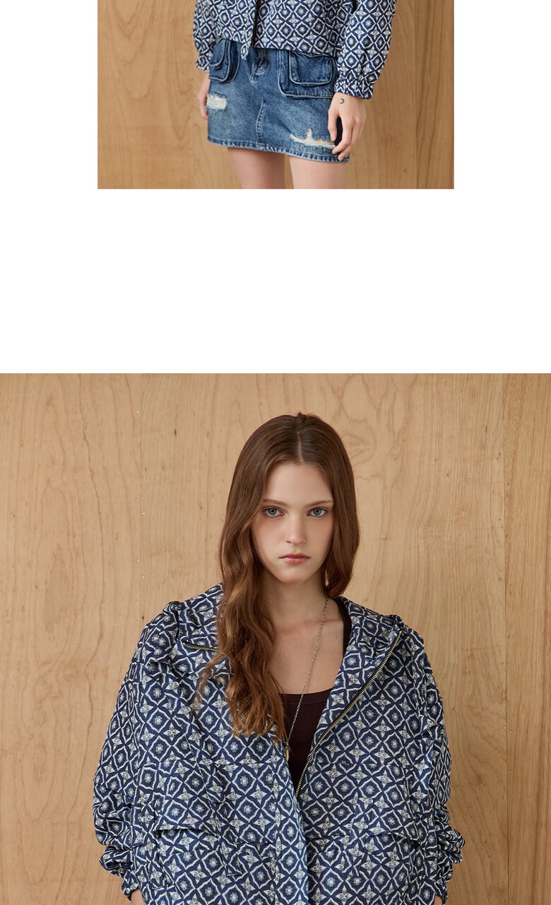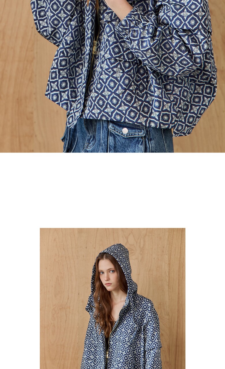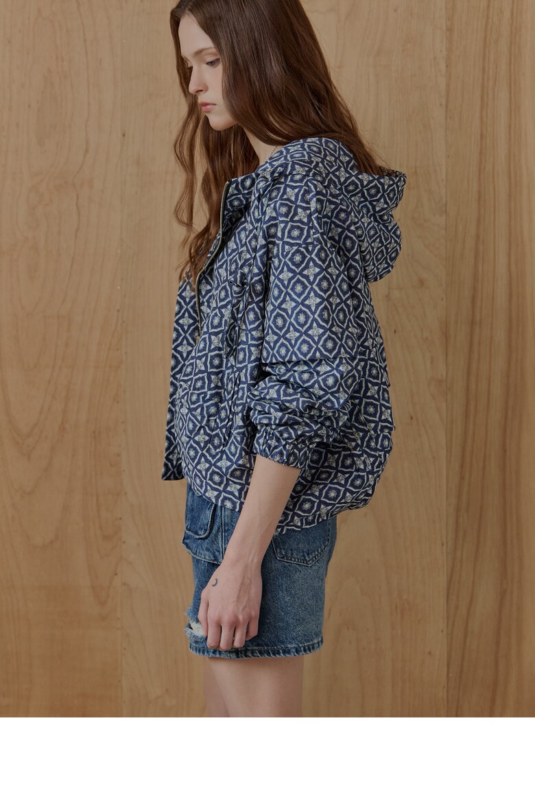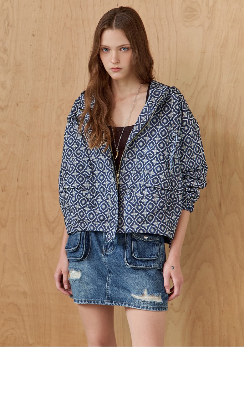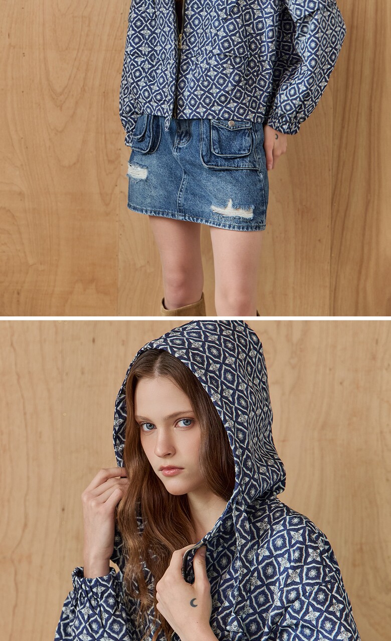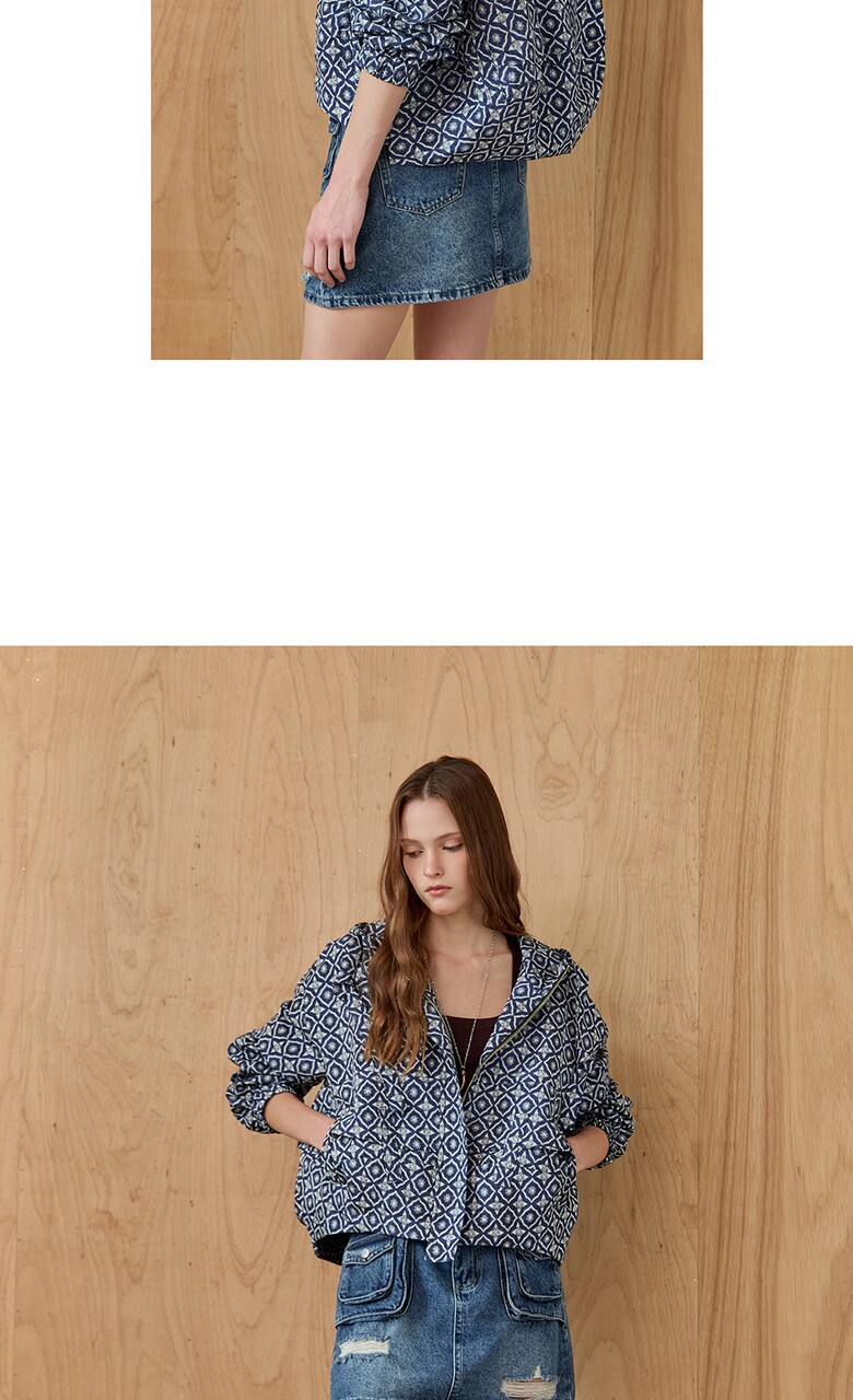 기하학 다이아몬드 패턴 볼륨 후드 점퍼