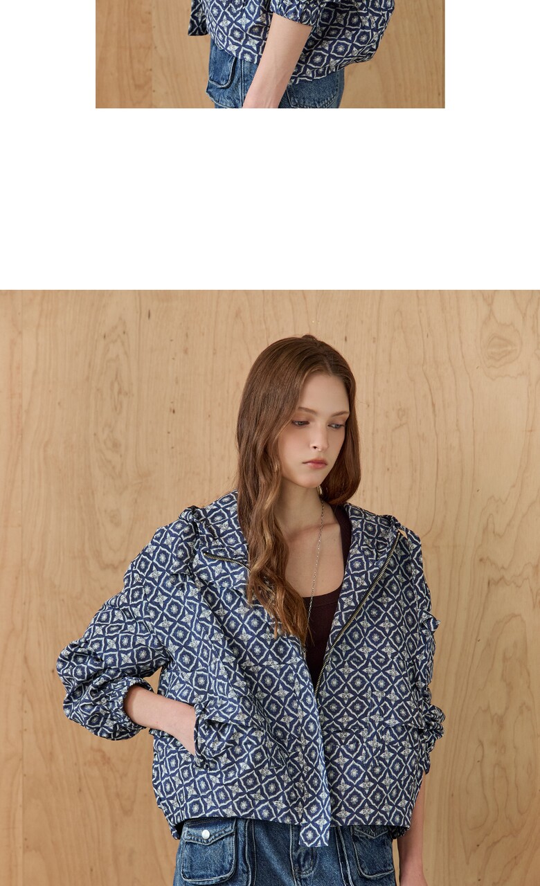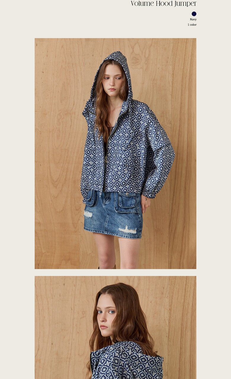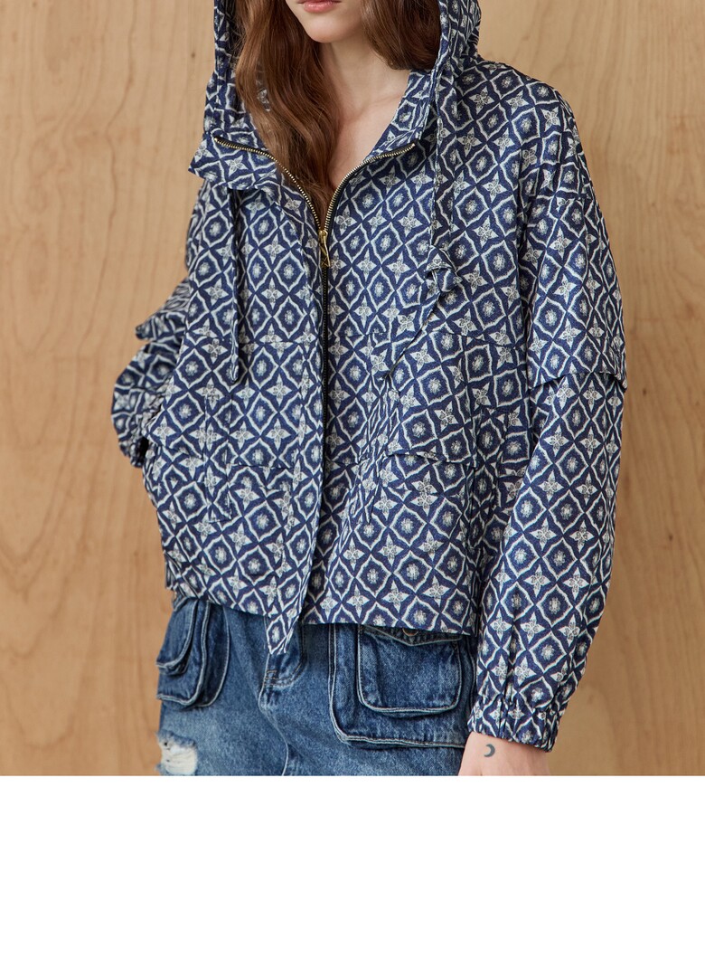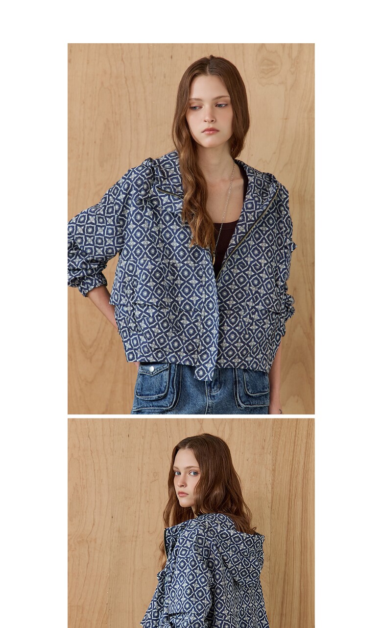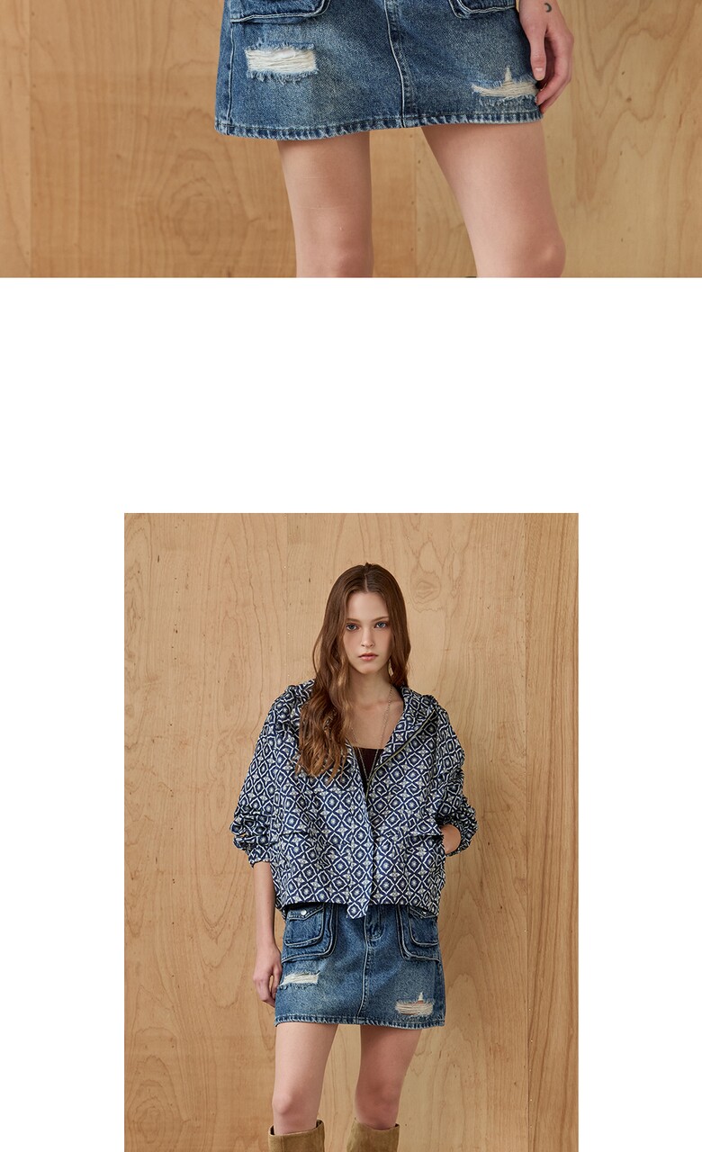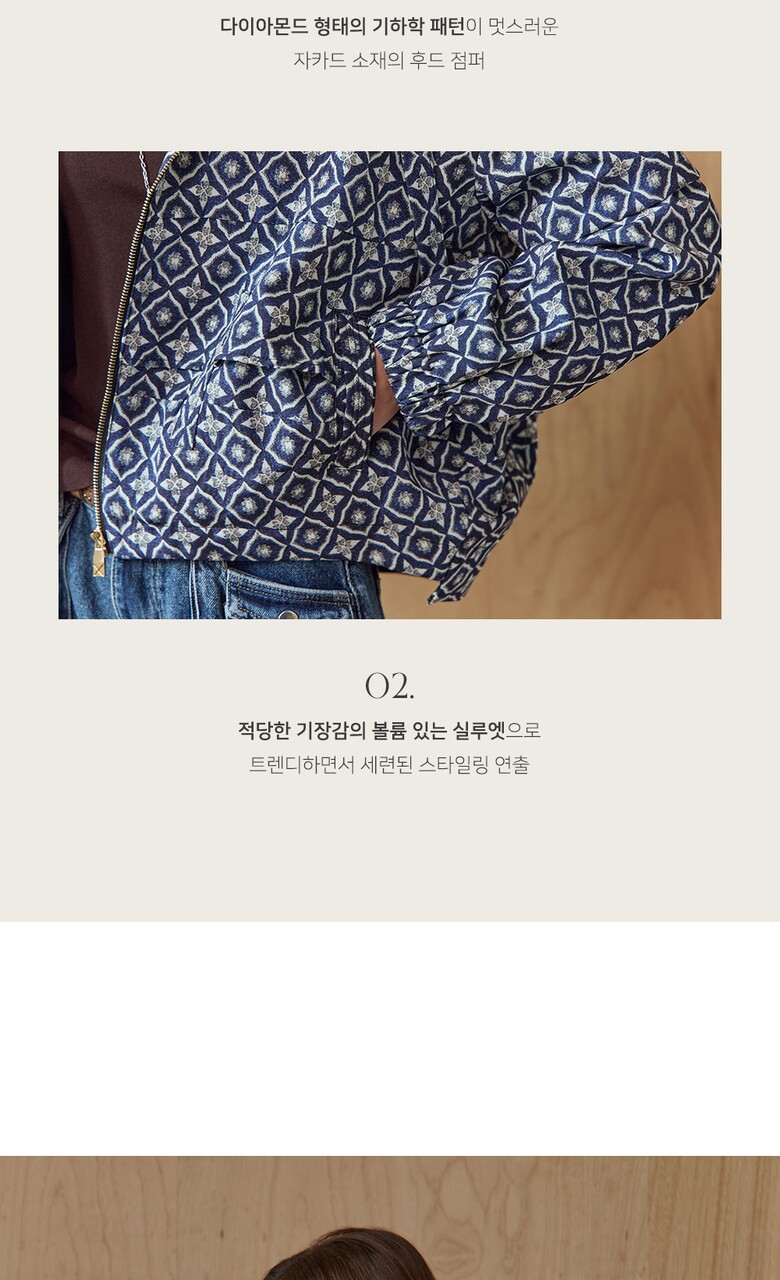 기하학 다이아몬드 패턴 볼륨 후드 점퍼