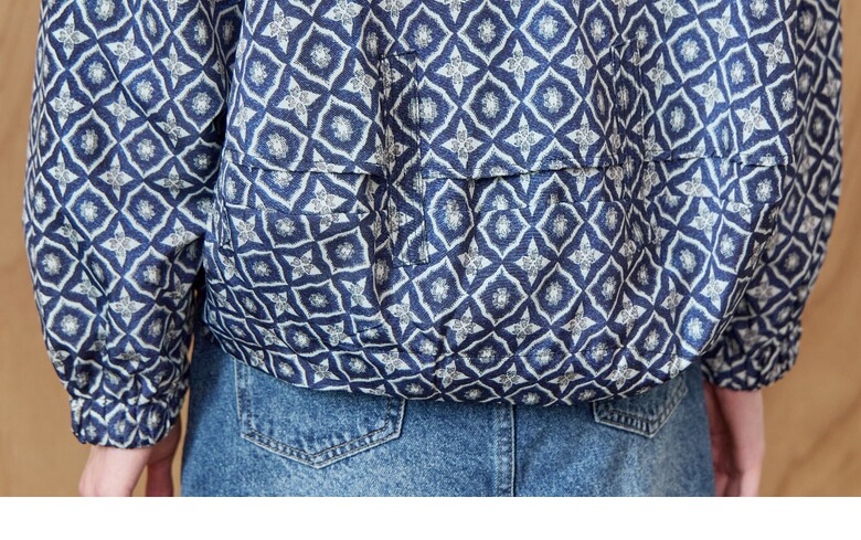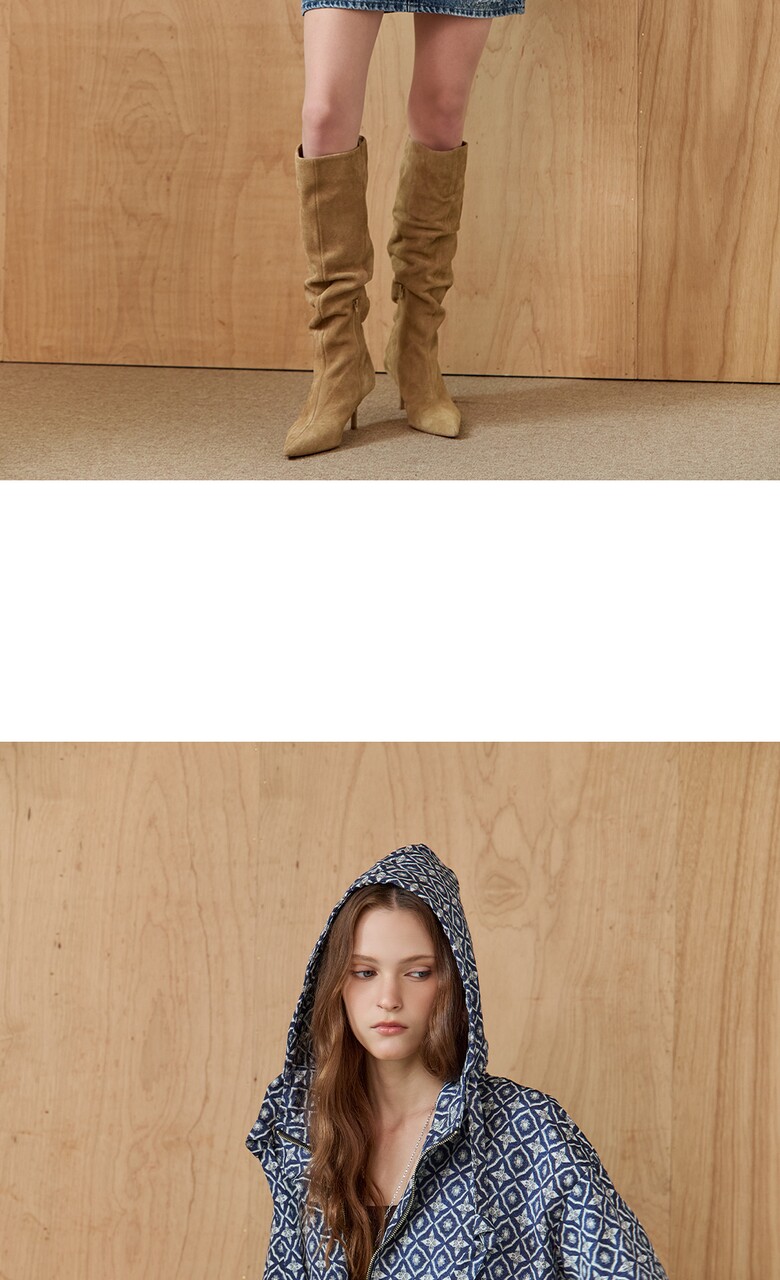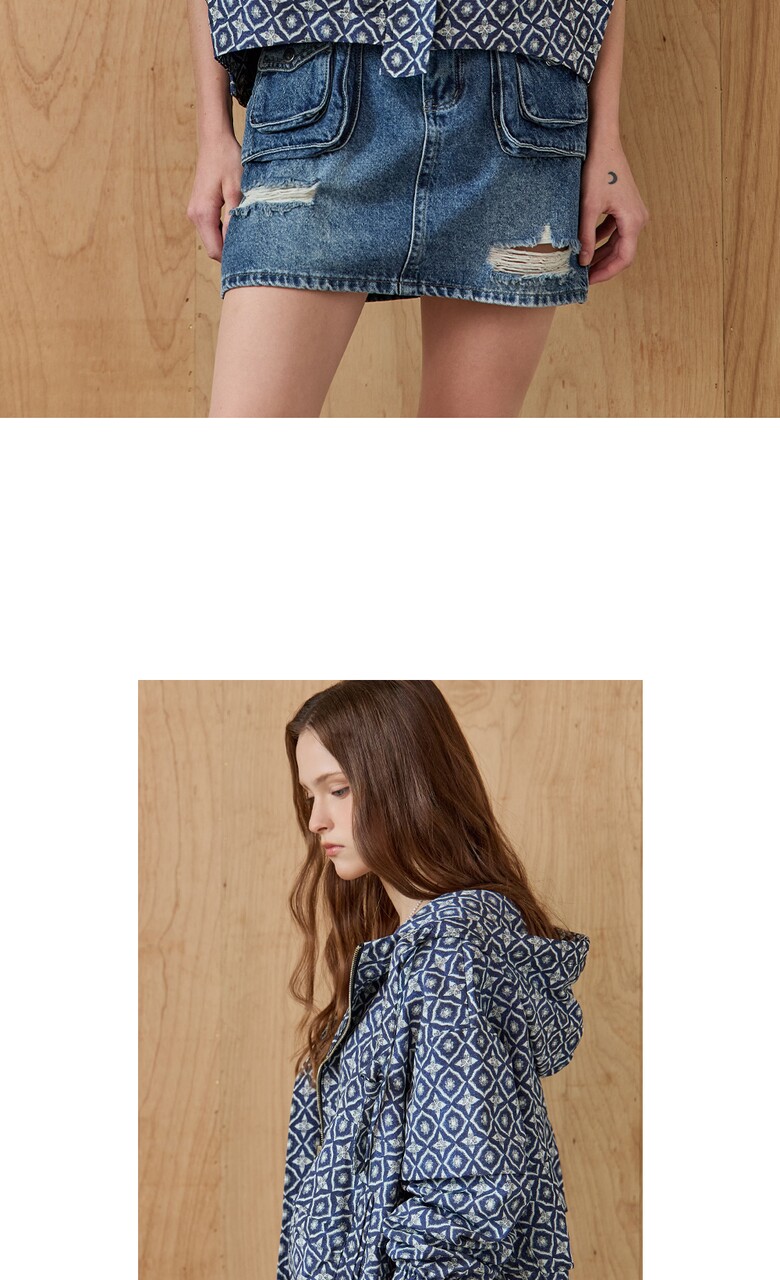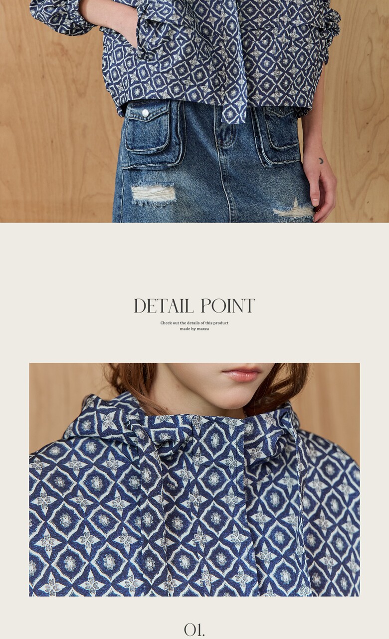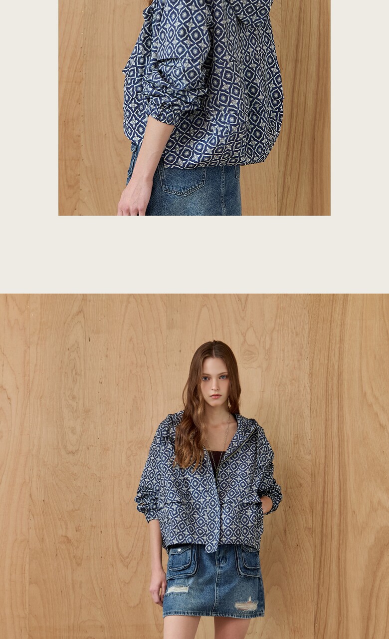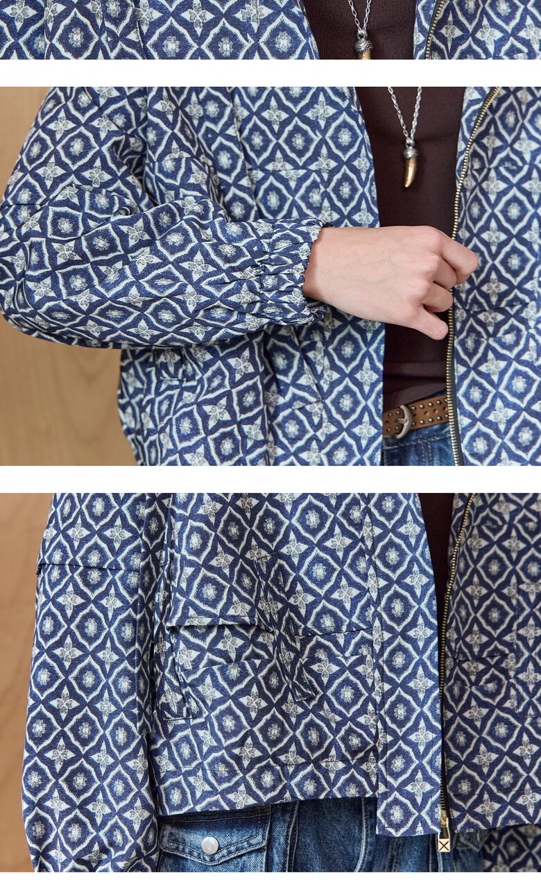 기하학 다이아몬드 패턴 볼륨 후드 점퍼