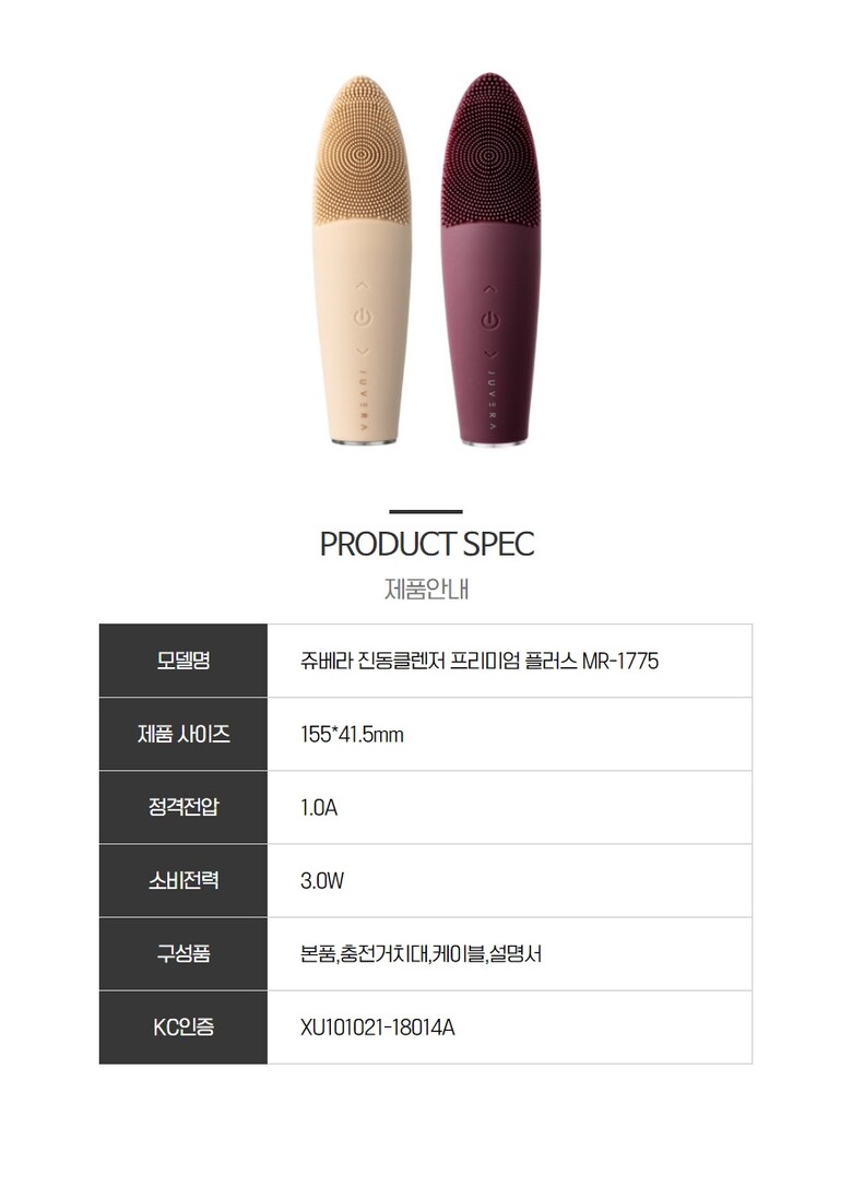 1. 모델명(품번) 쥬베라 프리미엄 플러스 진동클렌저 로얄베이지 / MR-1775
