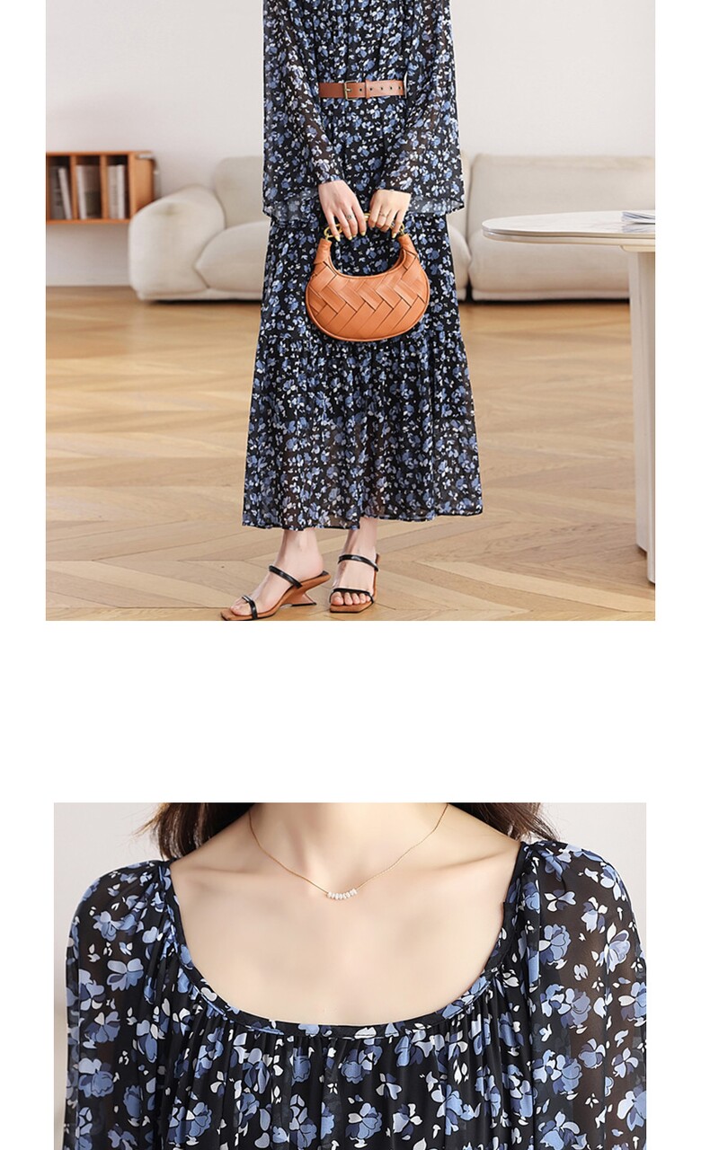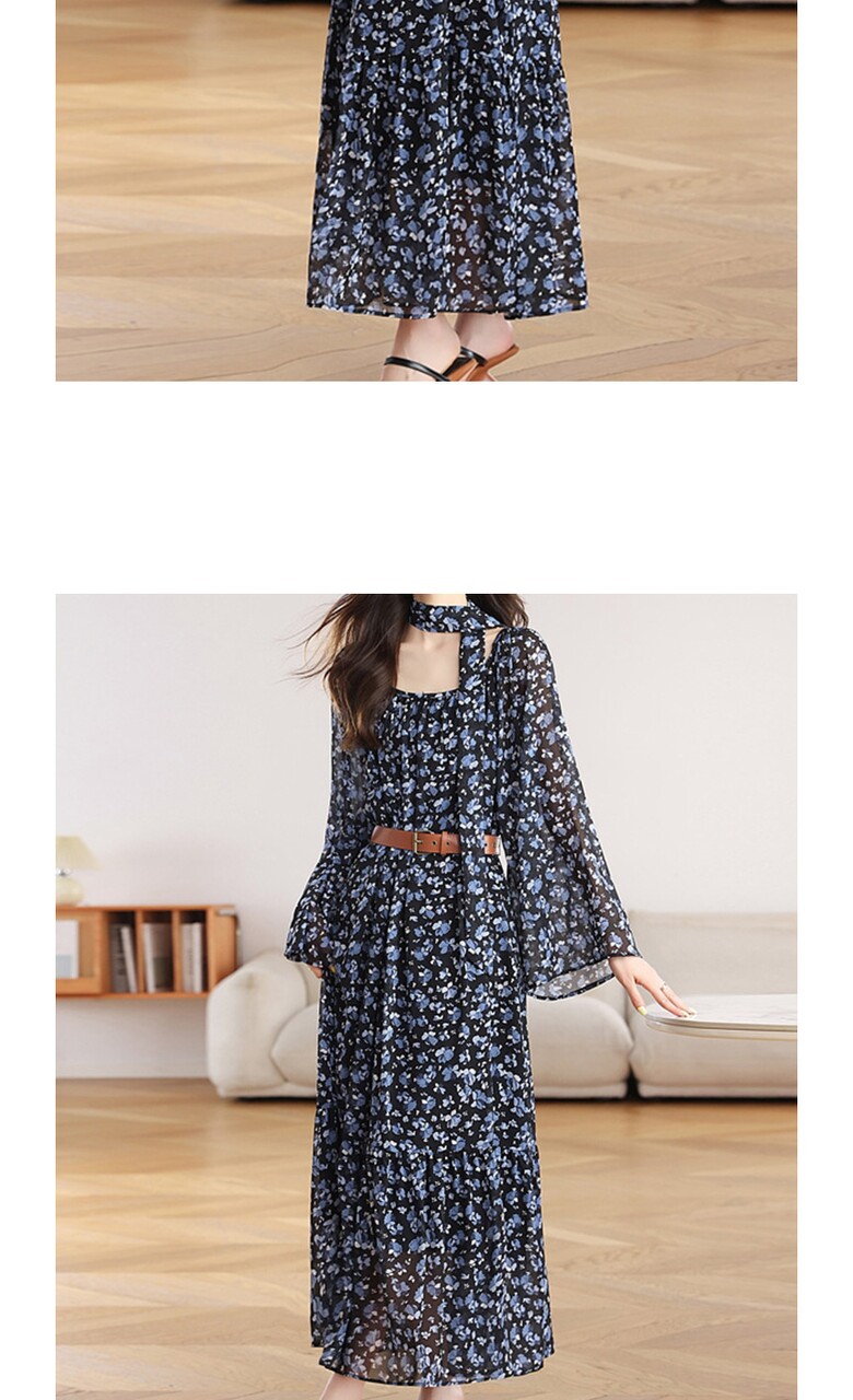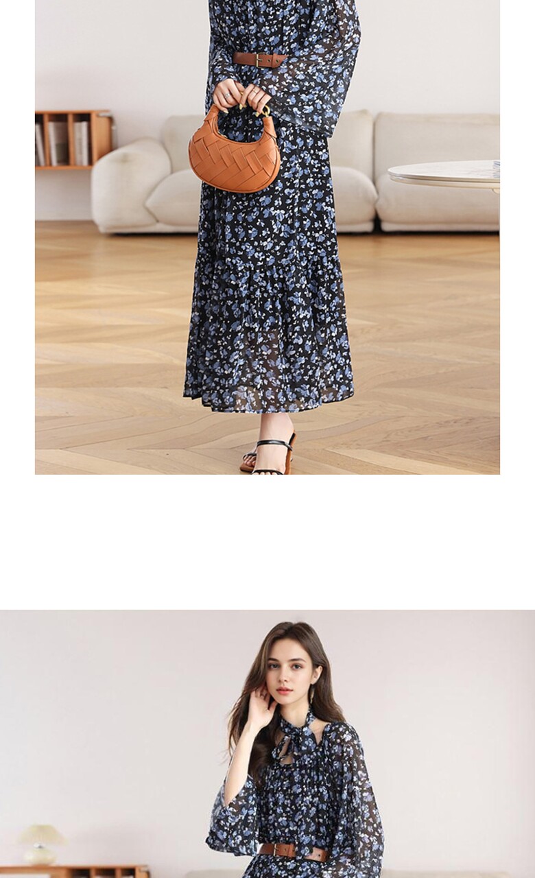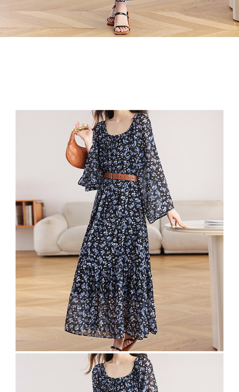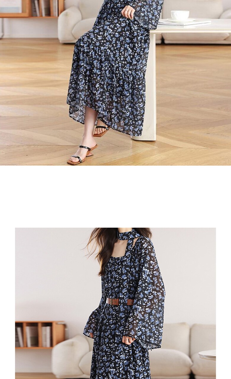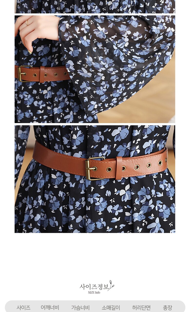 [비바로그] 덴쥬 플라워 패턴 셔링 원피스