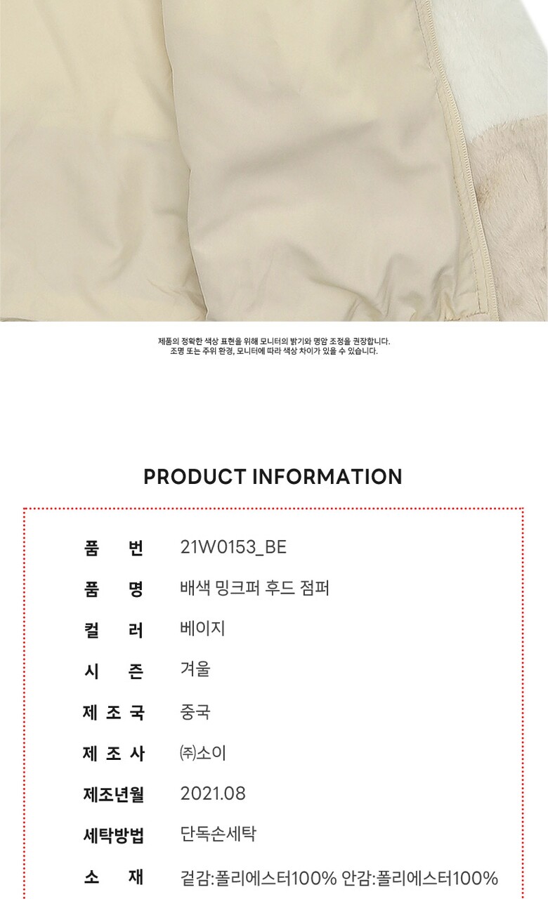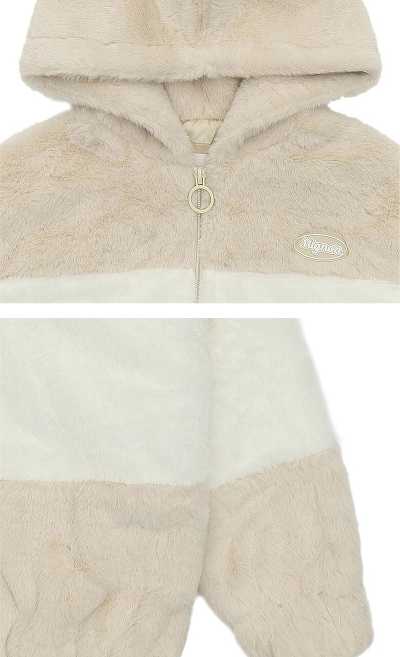 여아 배색 밍크퍼 후드 점퍼 21W0153_BE