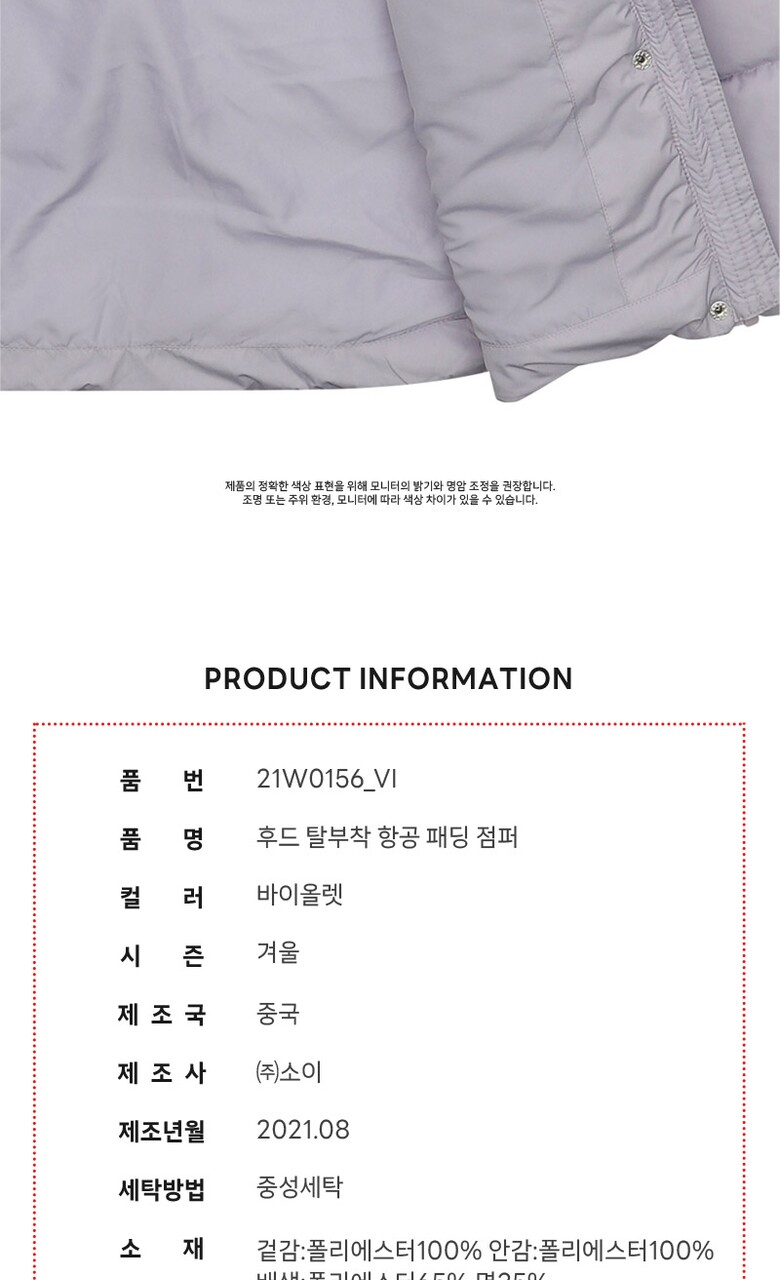 여아 후드 탈부착 항공 패딩 점퍼 21W0156_VI