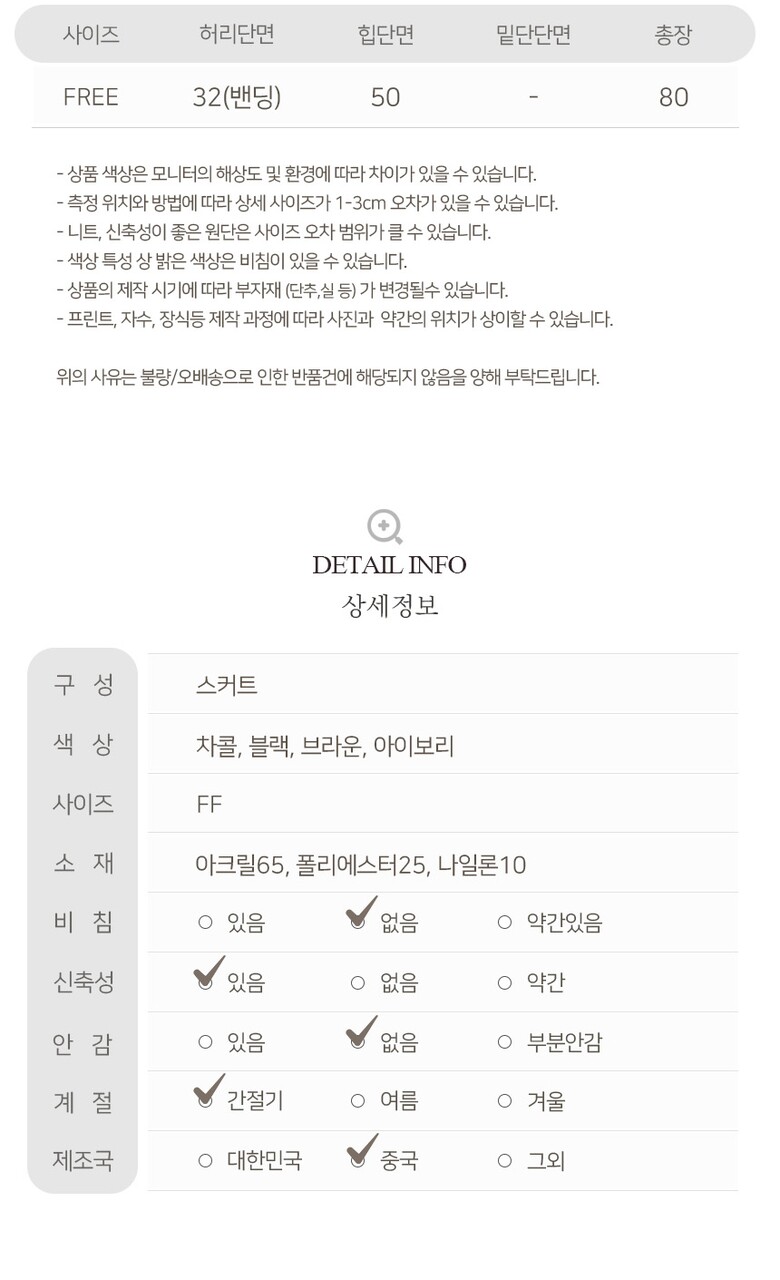 1. 제품 소재 (섬유의 조성 또는 혼용률을 백분율로 표시, 기능성인 경우 성적서 또는 허가서) 상세페이지 참조