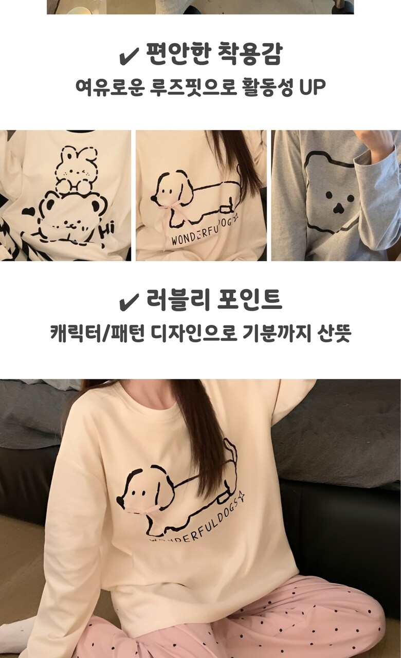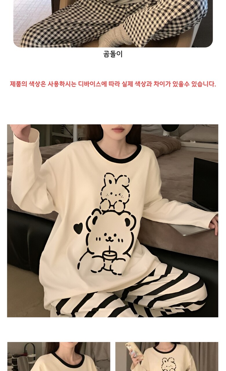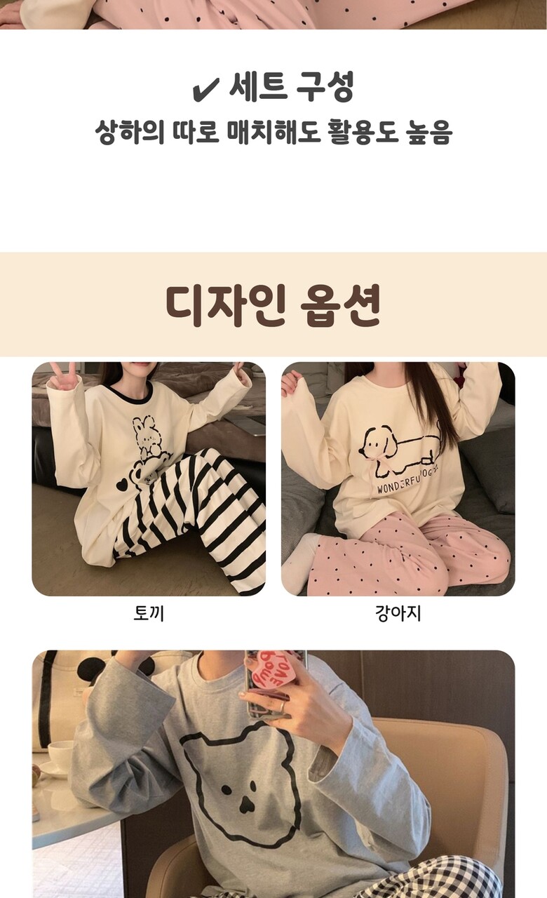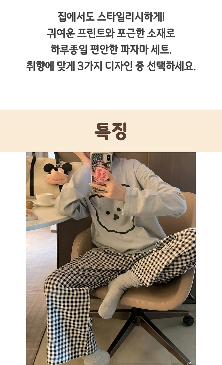 냥이멍이 귀여운 긴팔 파자마 잠옷세트 3컬러