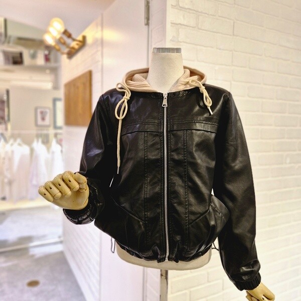 L254BLJA52_르니트후드레더자켓
