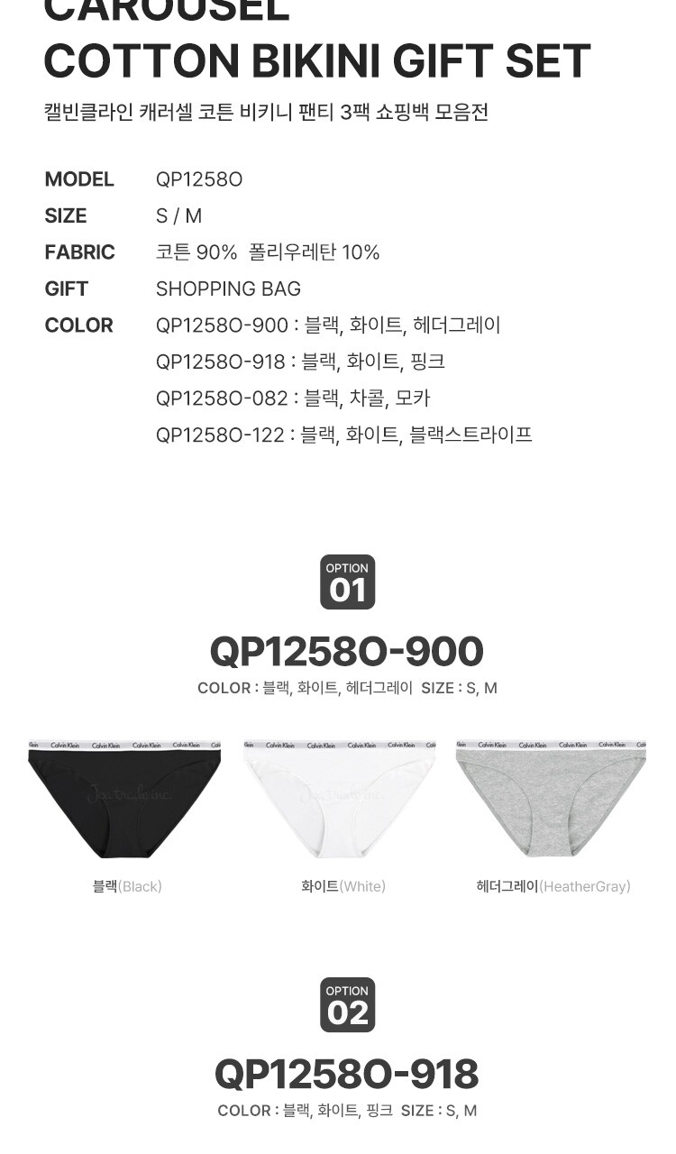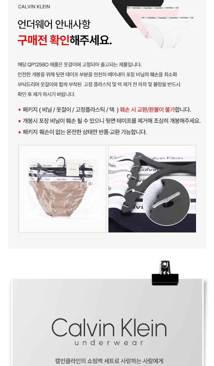 캘빈클라인 언더웨어 여자 팬티 3장 세트 속옷 면 QP1258O 쇼핑백(대) 증정