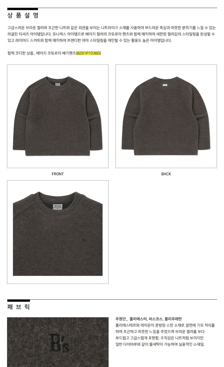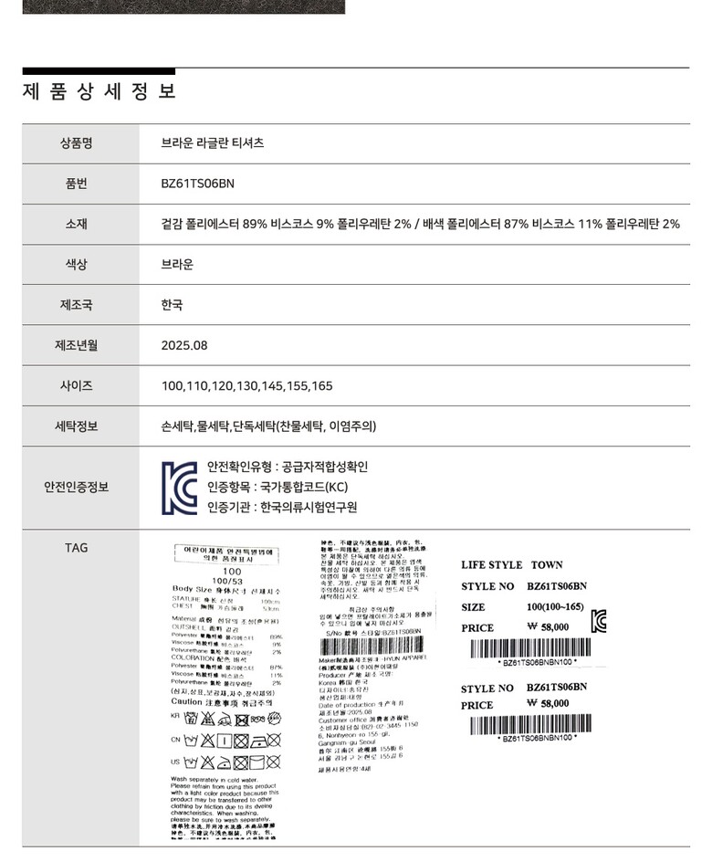 제품소재 : 겉감 폴리에스터 89% 비스코스 9% 폴리우레탄 2% / 배색 폴리에스터 87% 비스코스 11% 폴리우레탄 2%