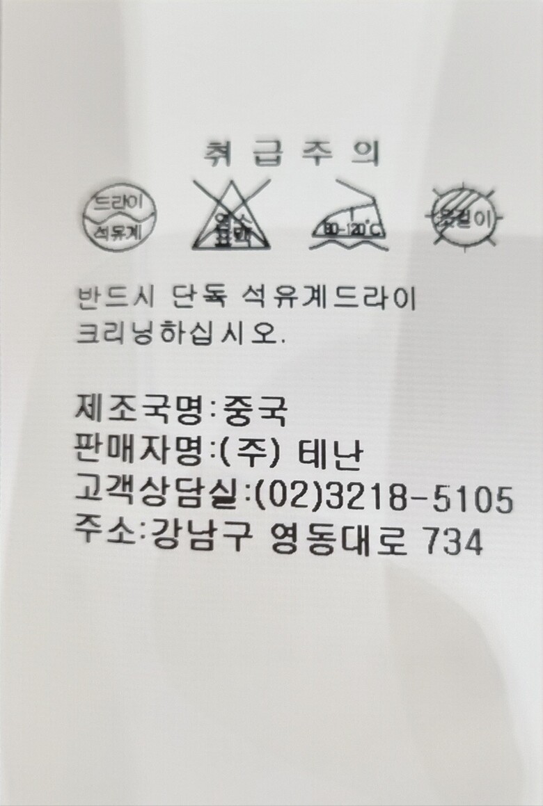 6. 세탁방법 및 취급시 주의사항 반드시 단독 석유계드라이 크리닝하십시오.
