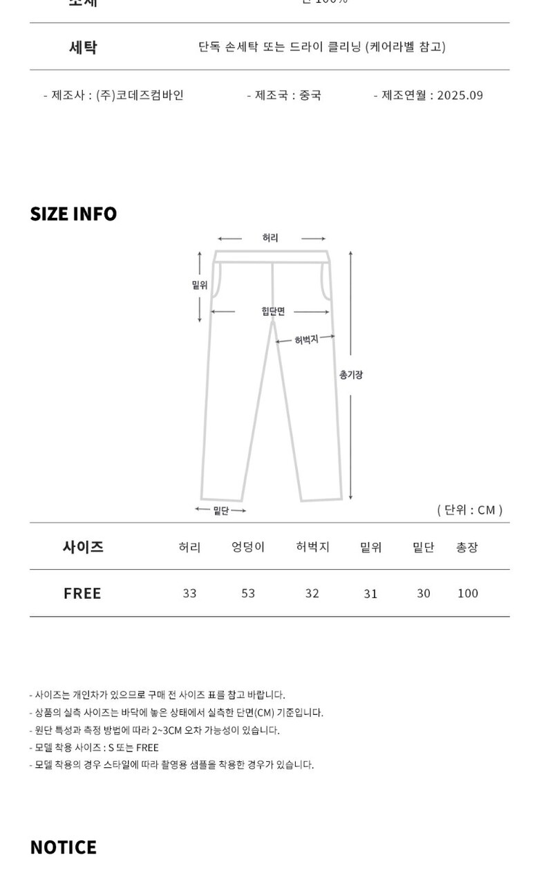 1. 제품 소재 (섬유의 조성 또는 혼용률을 백분율로 표시, 기능성인 경우 성적서 또는 허가서) | FREE |