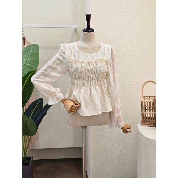 25FF5H9BL5245_스모크 배색 뷔스티에 블라우스