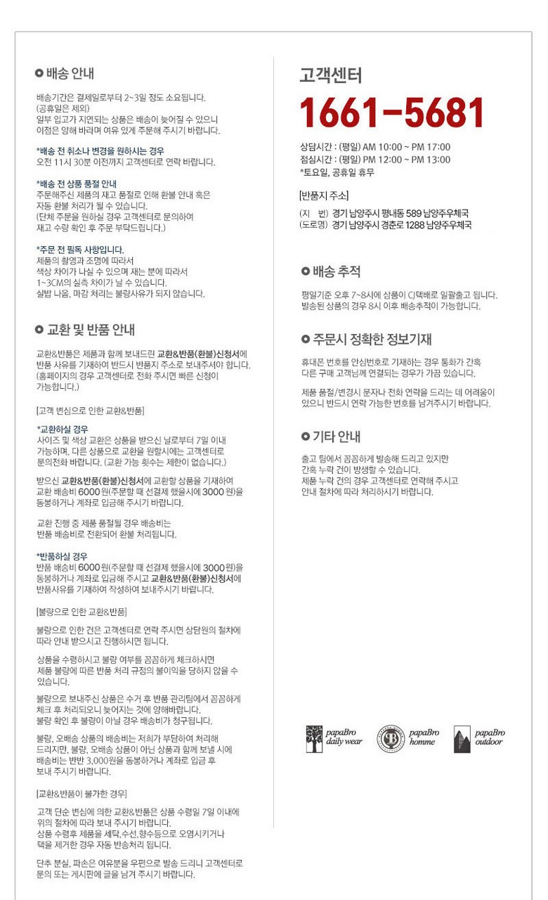 • 처음 배송된 상품상태와 다를 경우(세탁/착용 후 외출하신 경우) 반품이 불가합니다.