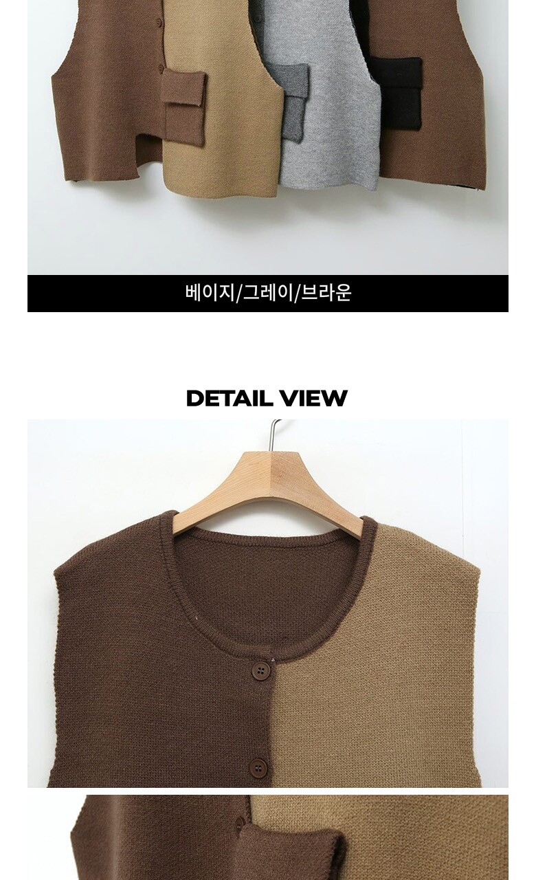 하프 배색 단추 니트 조끼_PK2510KV019C