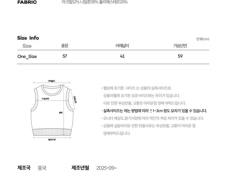 1. 제품 소재 (섬유의 조성 또는 혼용률을 백분율로 표시, 기능성인 경우 성적서 또는 허가서) | 아크릴52% 나일론28% 폴리에스테르20% |
