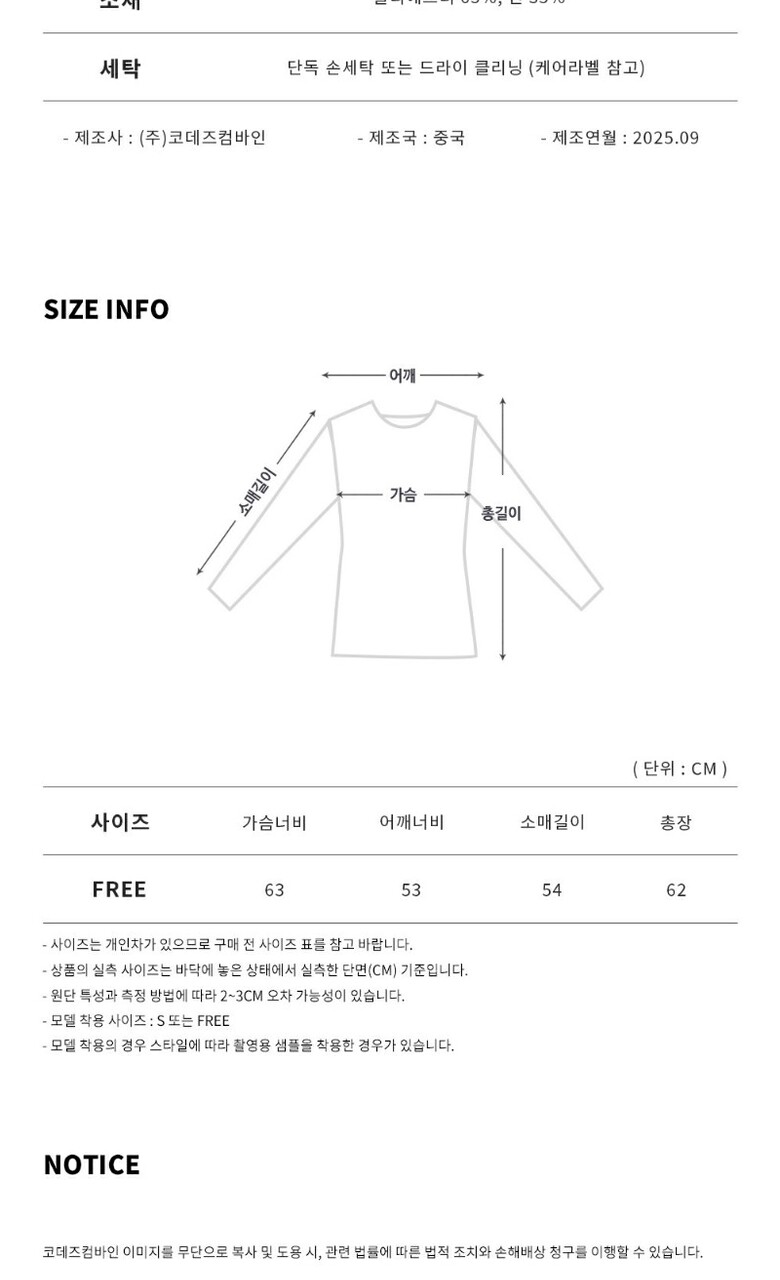1. 제품 소재 (섬유의 조성 또는 혼용률을 백분율로 표시, 기능성인 경우 성적서 또는 허가서) | FREE |