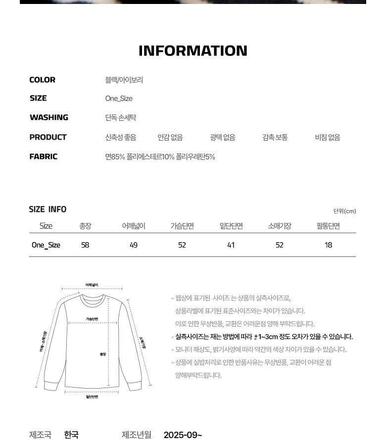 • 처음 배송된 상품상태와 다를 경우(세탁/착용 후 외출하신 경우) 반품이 불가합니다.