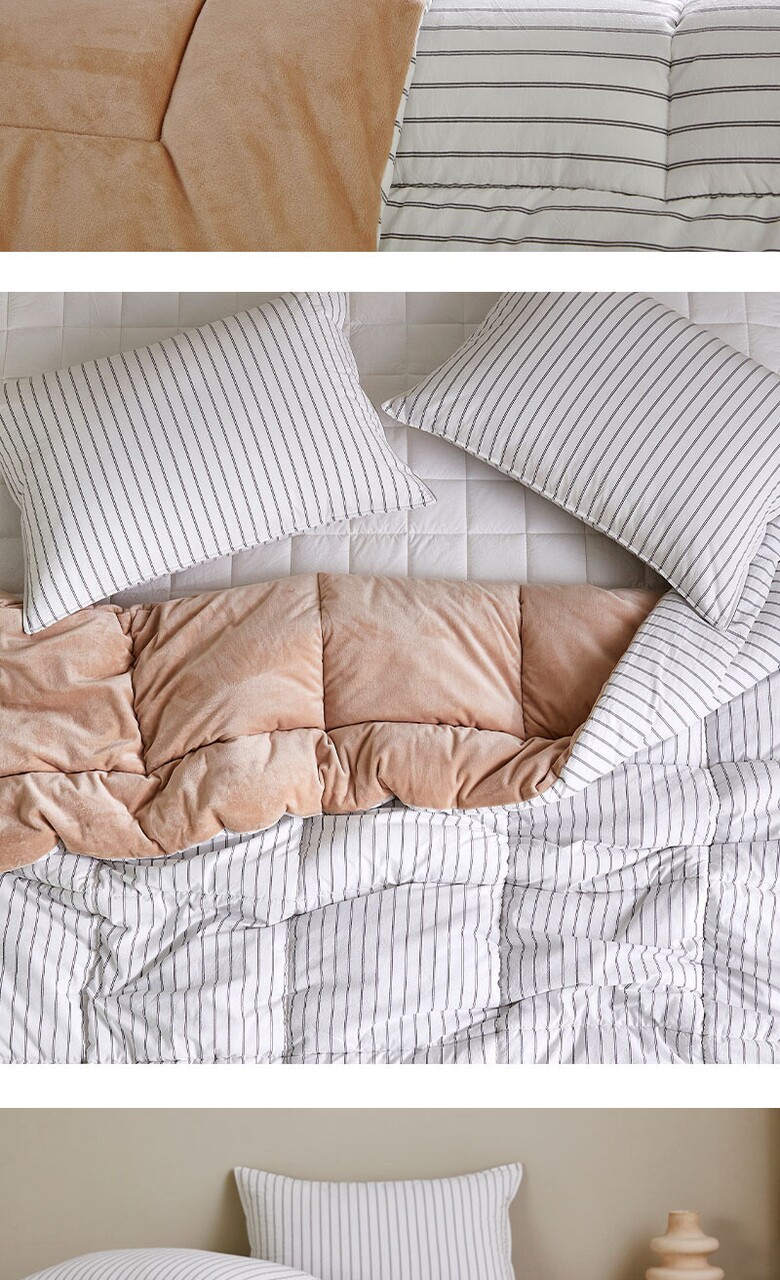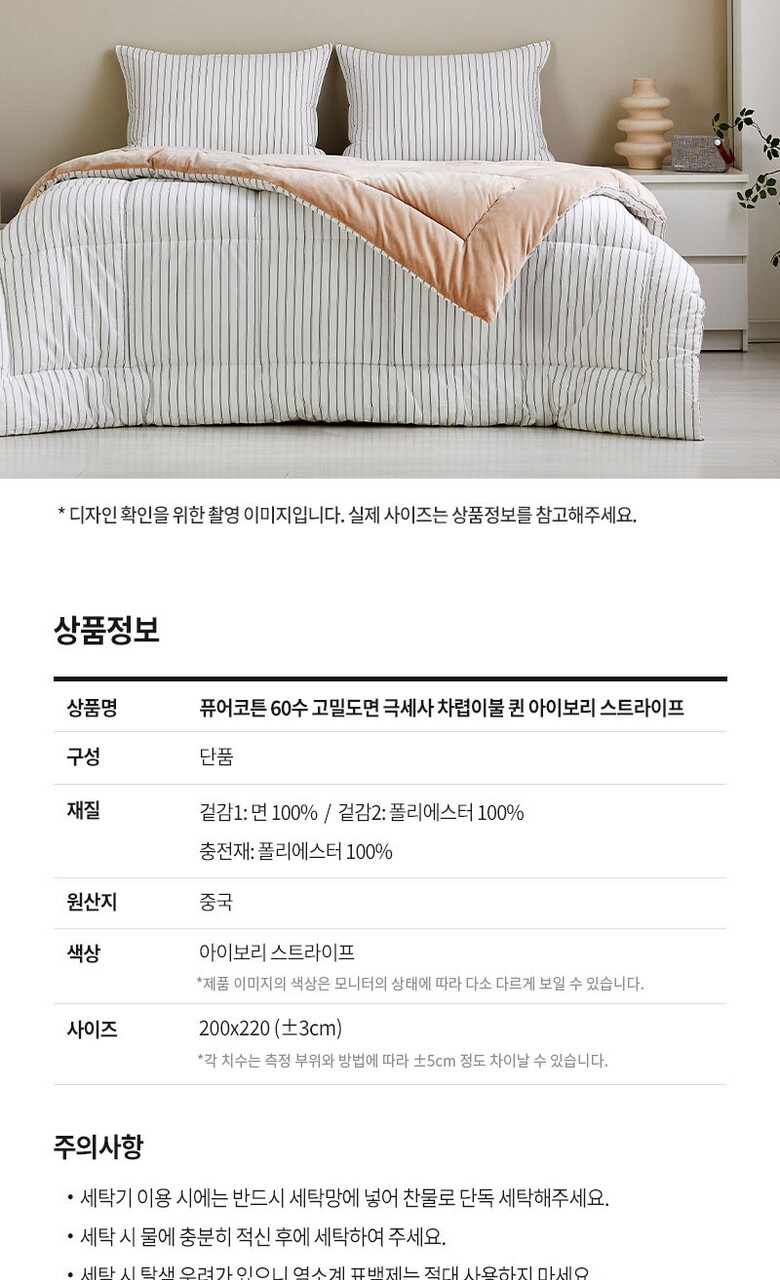 모던하우스 퓨어코튼 60수 고밀도면 극세사 차렵이불 퀸 아이보리 스트라이프 CV0225223