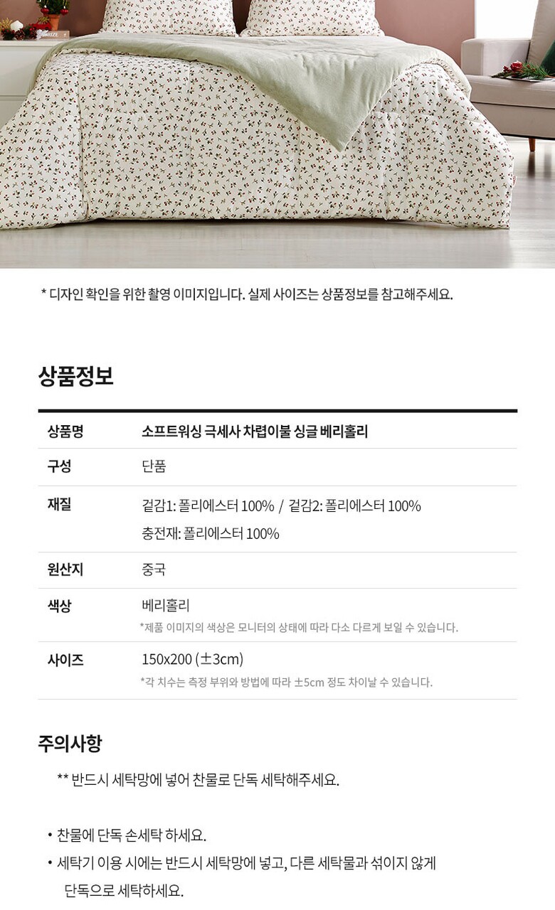 모던하우스 소프트워싱 극세사 차렵이불 싱글 베리홀리 CV0225235