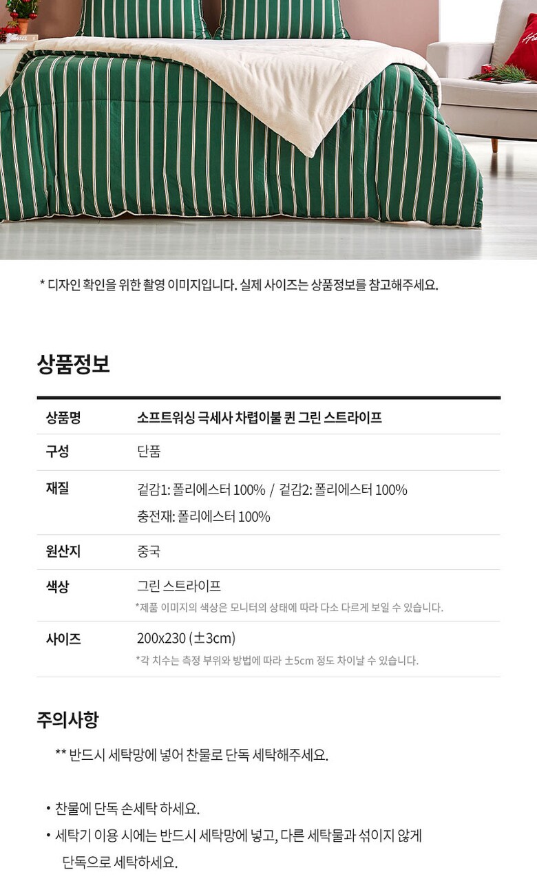 모던하우스 소프트워싱 극세사 차렵이불 퀸 그린 스트라이프 CV0225233