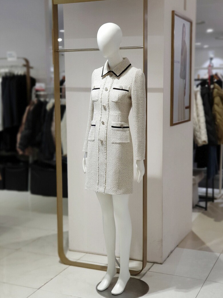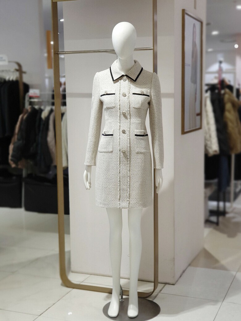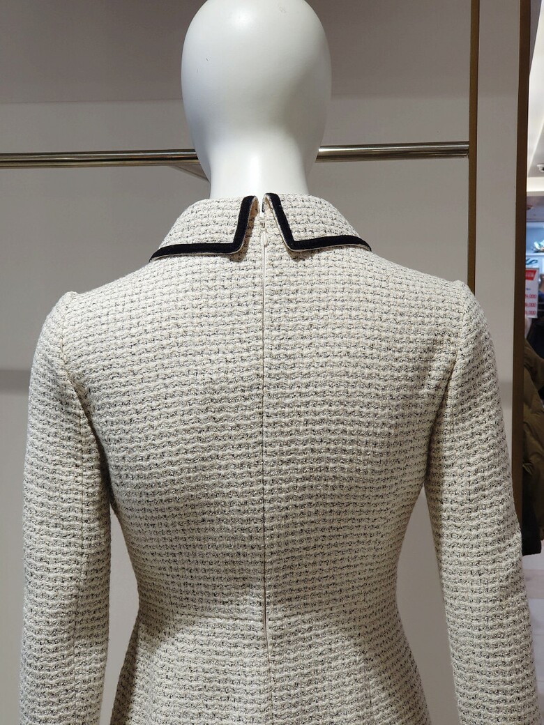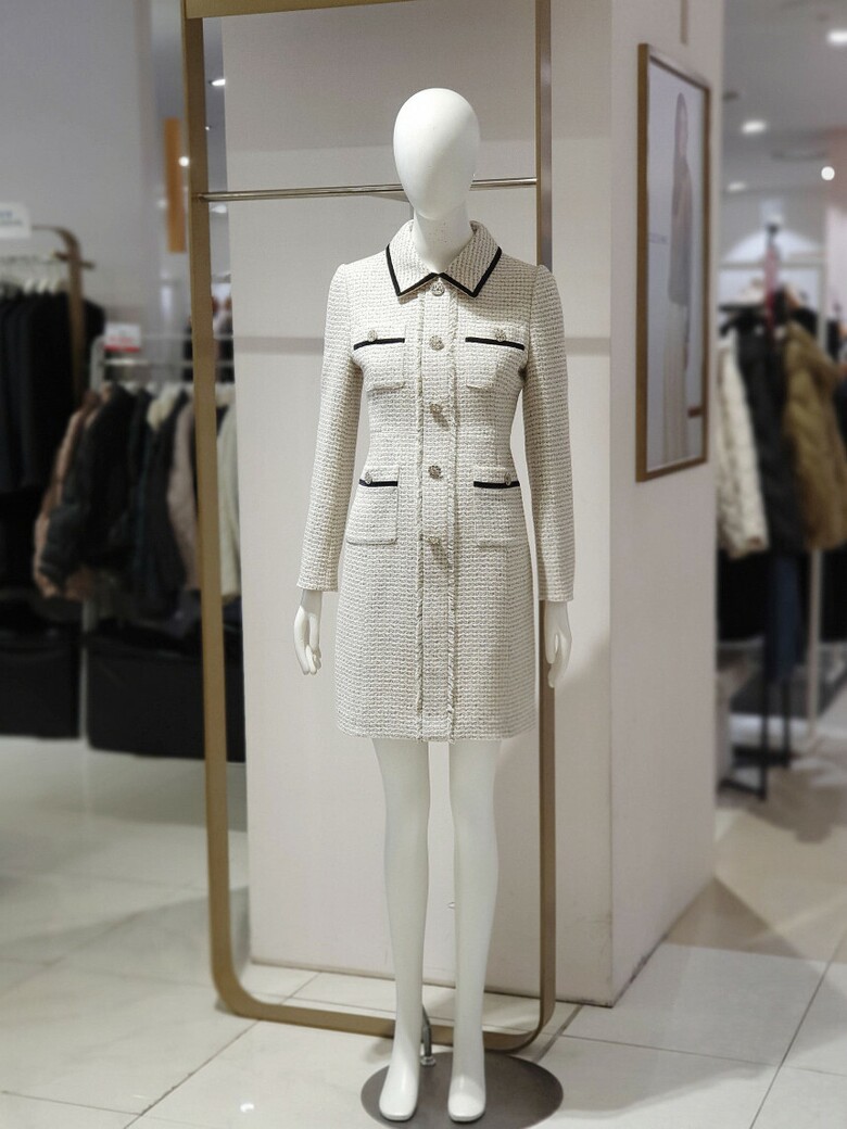 벨벳 배색 테이프가 멋스러움을 더해주는 트위드 원피스입니다.