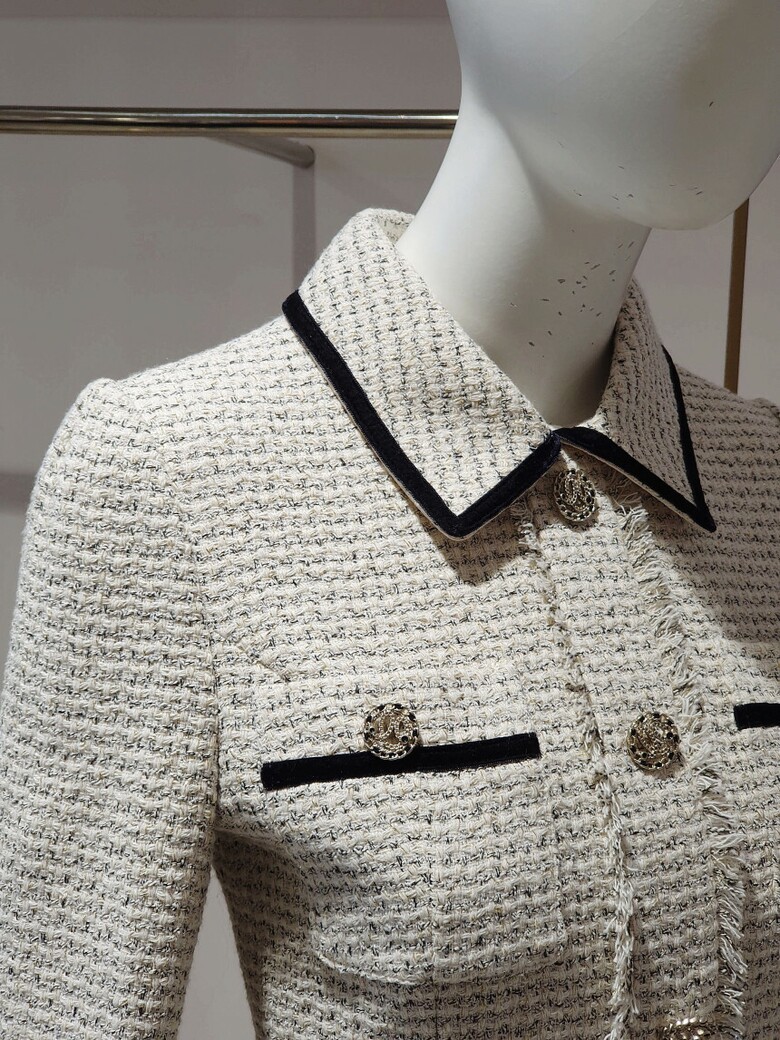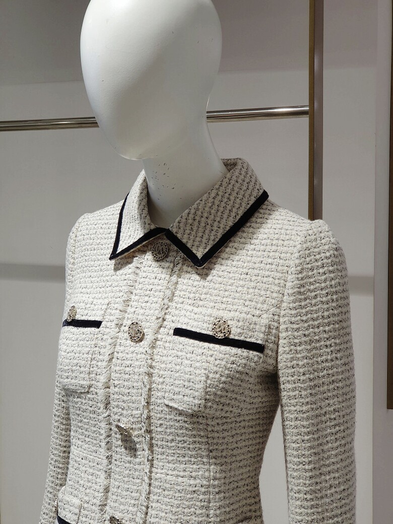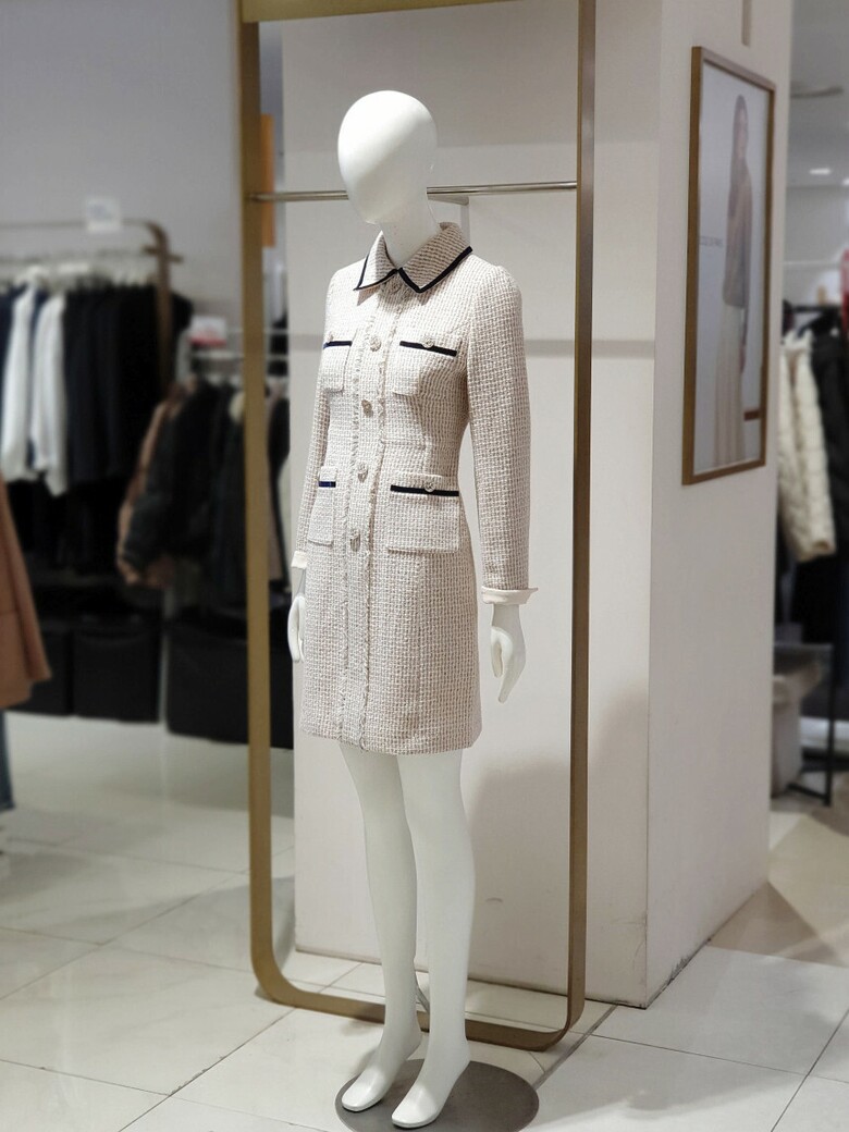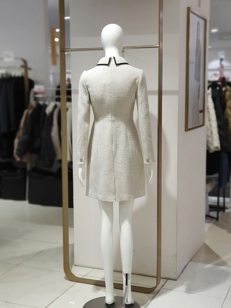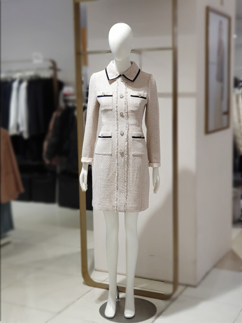 벨벳 배색 테이프가 멋스러움을 더해주는 트위드 원피스입니다.