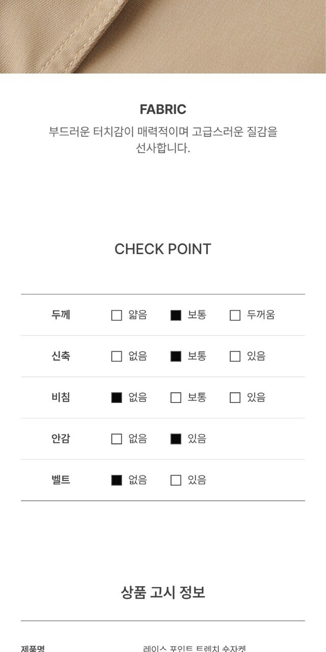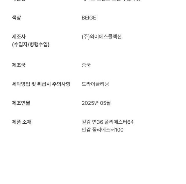 1. 제품 소재 (섬유의 조성 또는 혼용률을 백분율로 표시, 기능성인 경우 성적서 또는 허가서) 상품상세참조