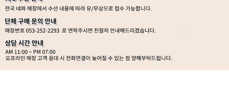 • 온라인 주문상품의 경우 오프라인 매장에서 교환/반품이 불가합니다.