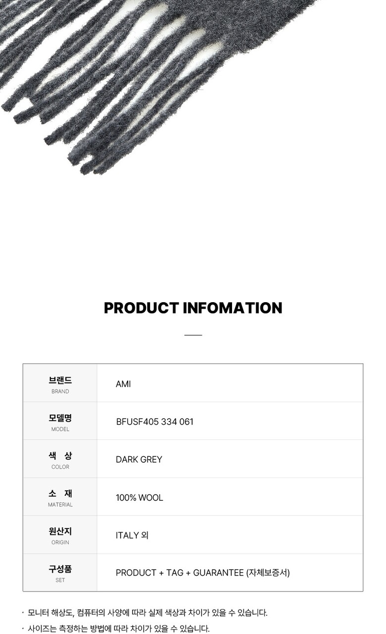 [아미] BFUSF405 334 061 FW25 공용 울 프린지 머플러
