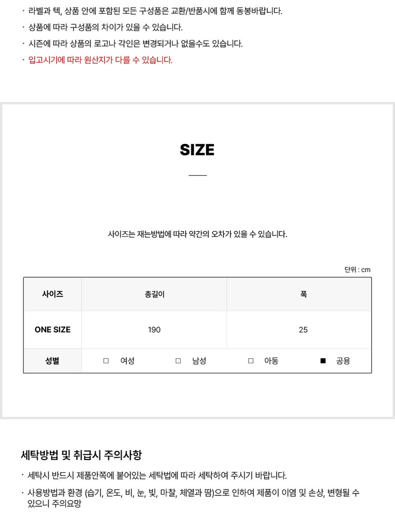 3. 치수 | 총길이 190cm X 폭 25cm |