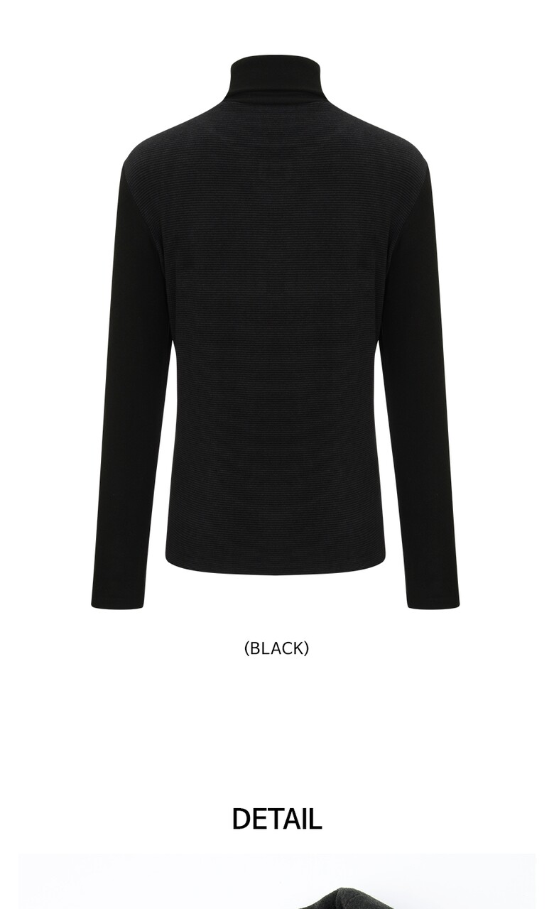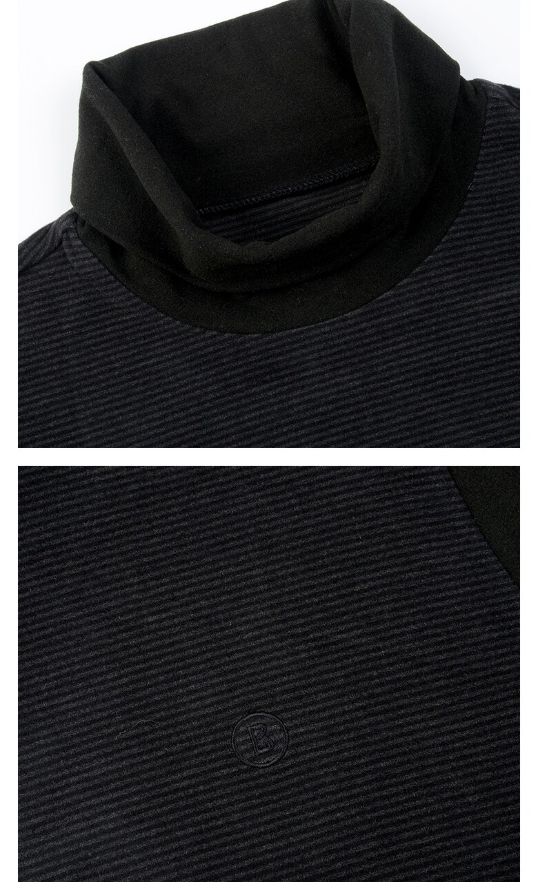 [보그너] 여성 스트라이프 블럭 터틀넥 티셔츠 BLACK
