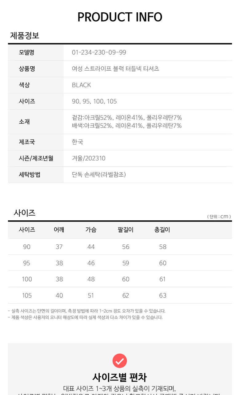 3. 치수 | 90사이즈기준실측 : 어깨37cm, 가슴44cm, 팔길이56cm, 총길이58cm |