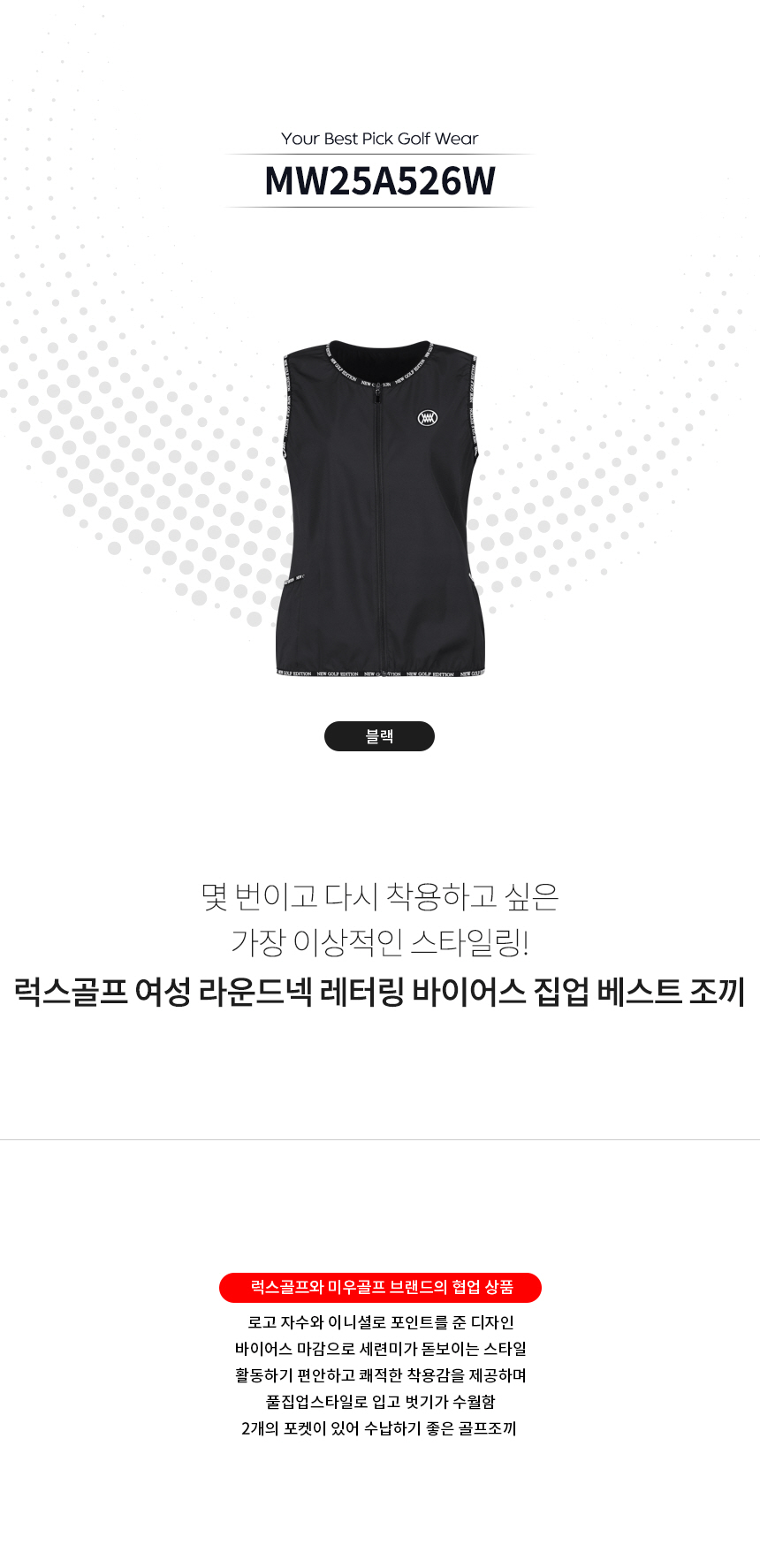 보스케 여성 가을 골프 라운드넥 레터링 집업 조끼 LB25068