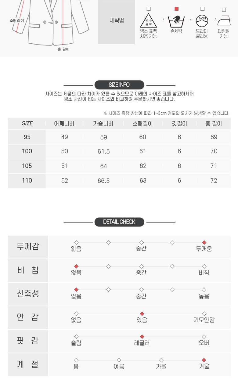 6. 세탁방법 및 취급시 주의사항 | 단독손세탁 |