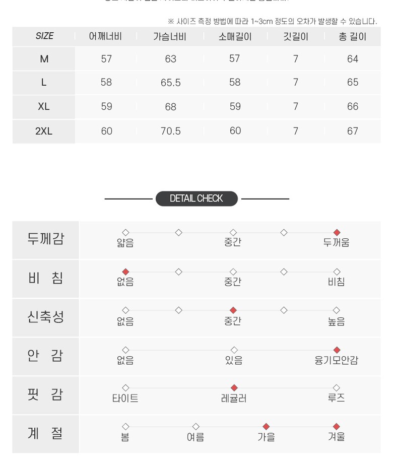 3. 치수 | M,L,XL,XXL |