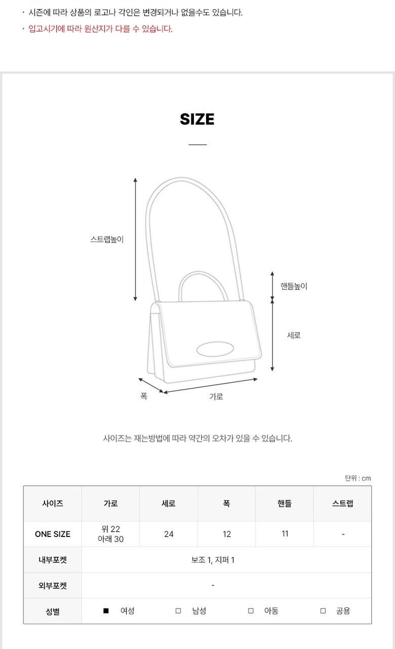 4. 크기 | 가로 22-30cm X 세로 24cm X 폭 12cm |