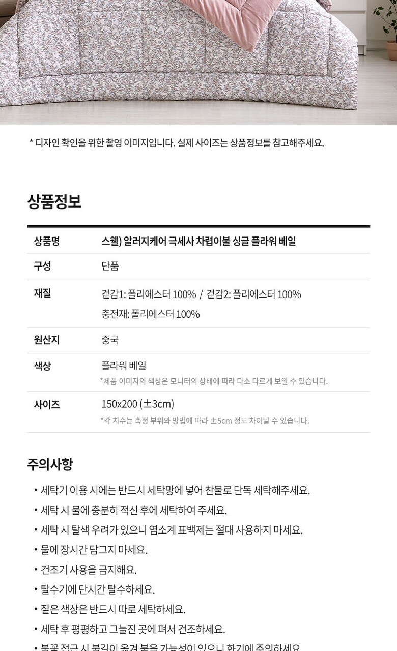 모던하우스 스웰 알러지케어 극세사 차렵이불 싱글 플라워 베일 CV0225214