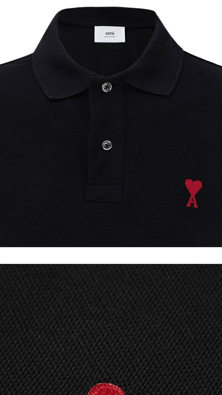 아미 25FW 남성 하트 스몰 로고 카라 티셔츠 블랙 BFUPL001 760 001