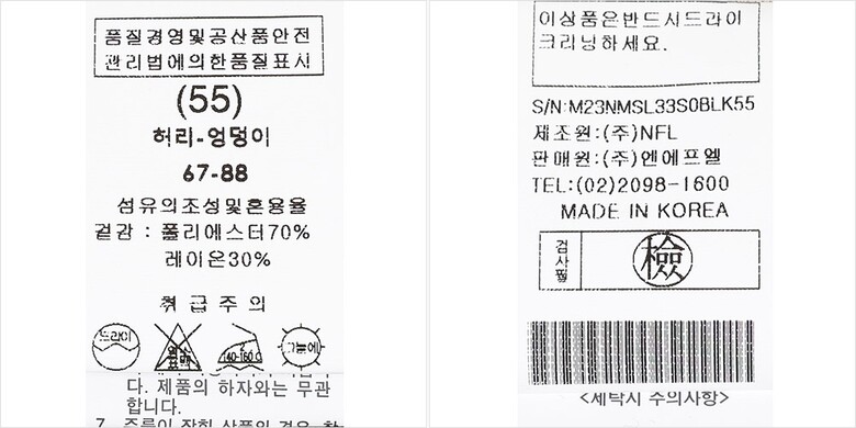 • 처음 배송된 상품상태와 다를 경우(세탁/착용 후 외출하신 경우) 반품이 불가합니다.