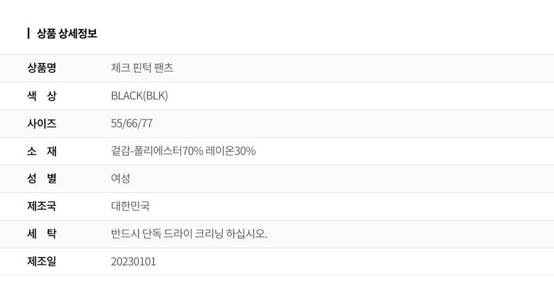 6. 세탁방법 및 취급시 주의사항 상세페이지 참조