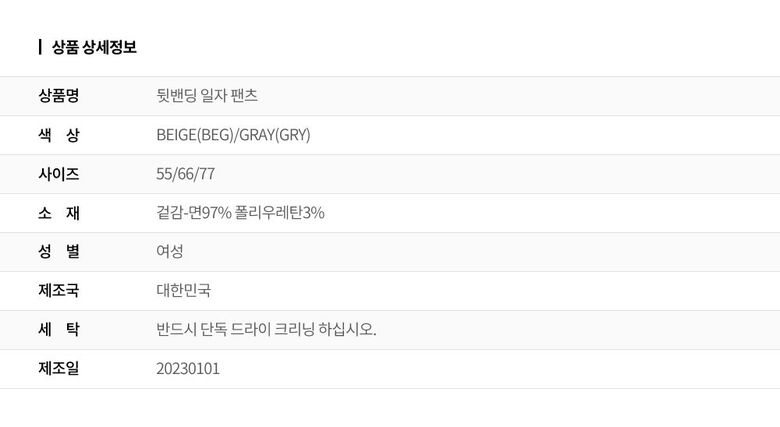 2. 색상 색상:BEIGE(BEG)/GRAY(GRY)