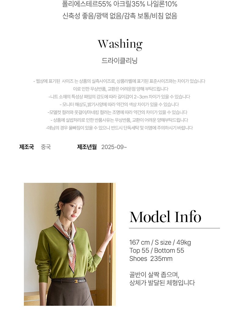 1. 제품 소재 (섬유의 조성 또는 혼용률을 백분율로 표시, 기능성인 경우 성적서 또는 허가서) 폴리에스테르55% 아크릴35% 나일론10%